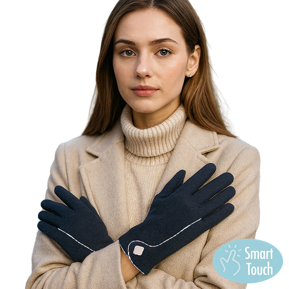 Contrast stitch accent smart touch gloves that blend classic style with modern function. Soft, warm, and touchscreen compatible for easy phone use on the go.