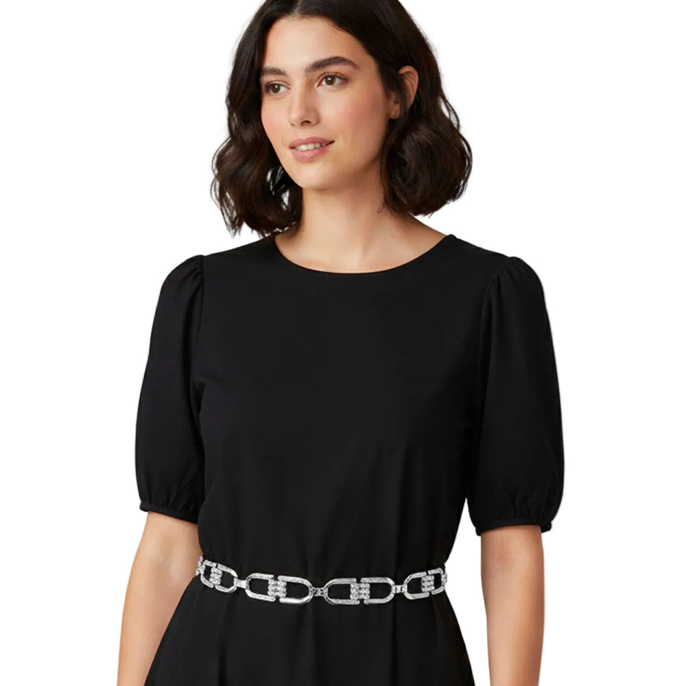 Textured metal double D link chain waist belt available in gold or silver. Features a bold linked design with a textured finish for added dimension. A versatile accessory that styles easily with dresses, denim, or layered outfits.