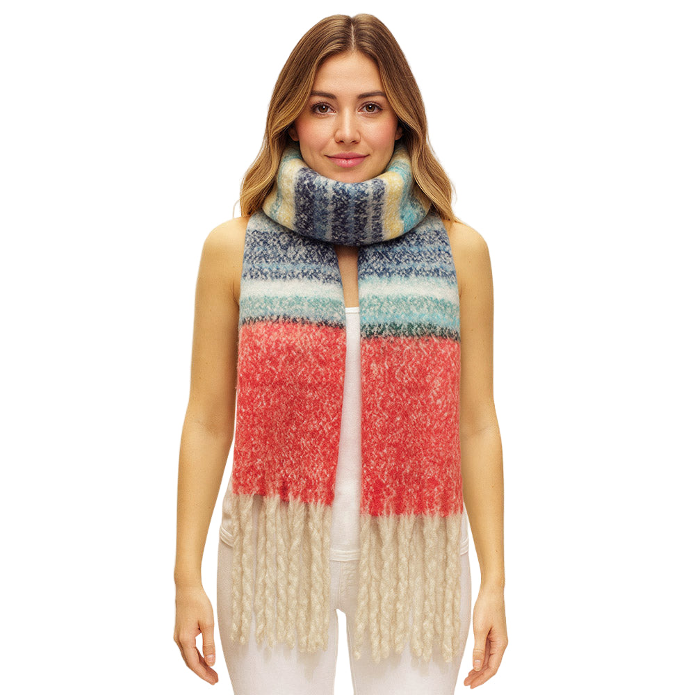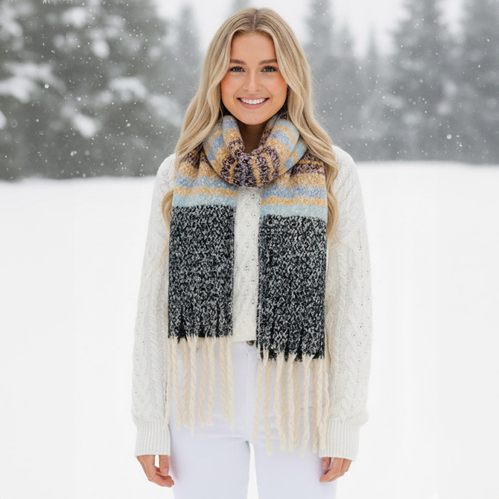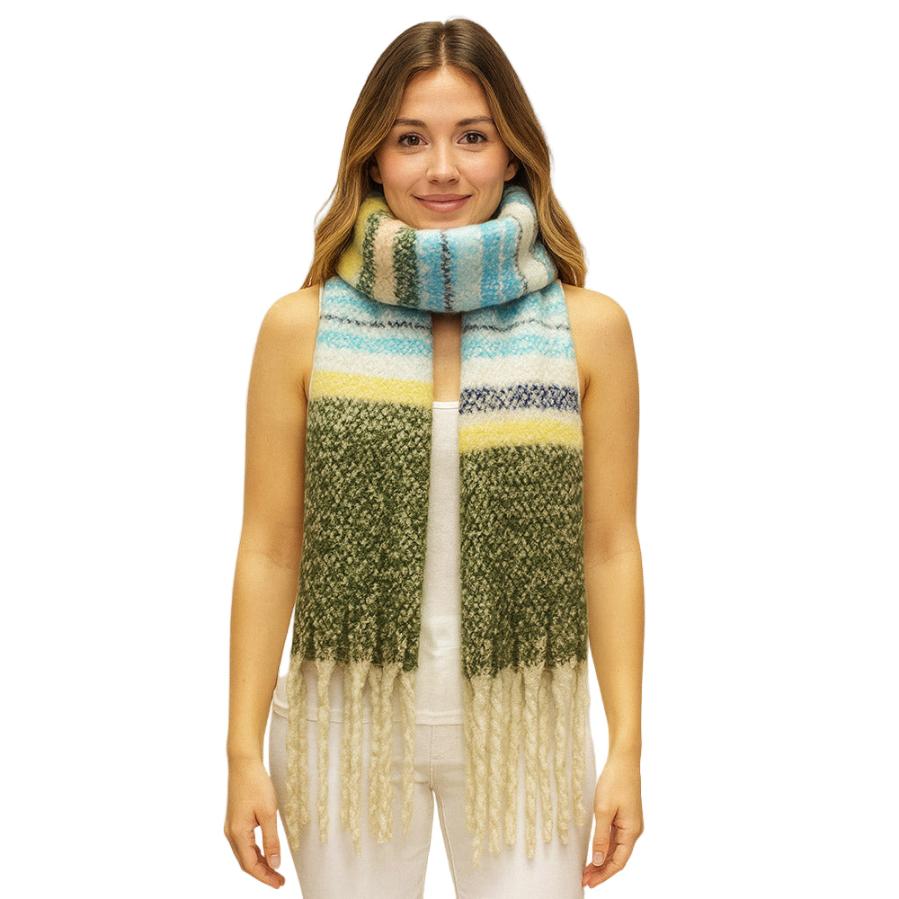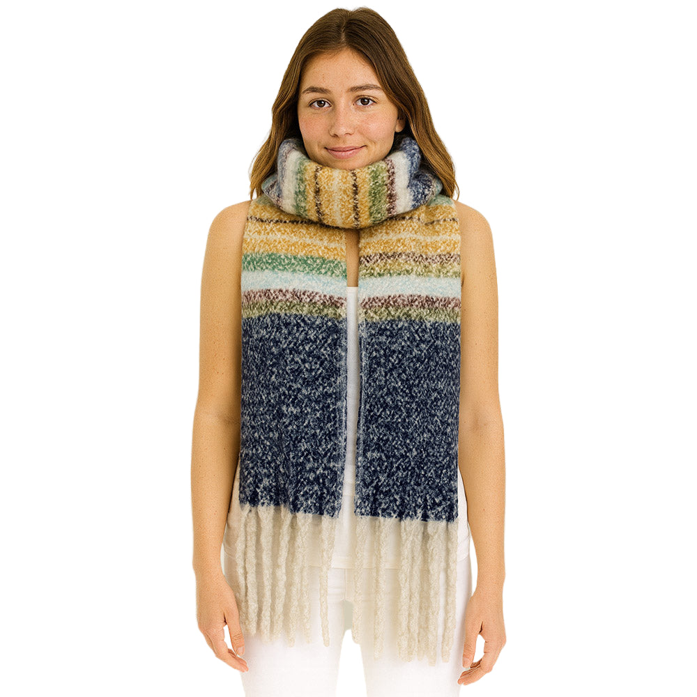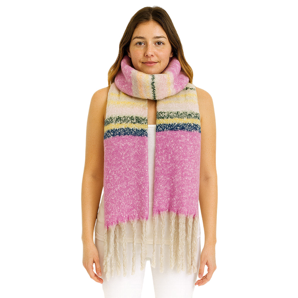 Wrap yourself in comfort with this soft fuzzy oversized striped fringe scarf. Cozy and stylish, it’s perfect for chilly days, adding warmth and a touch of charm to your winter look.