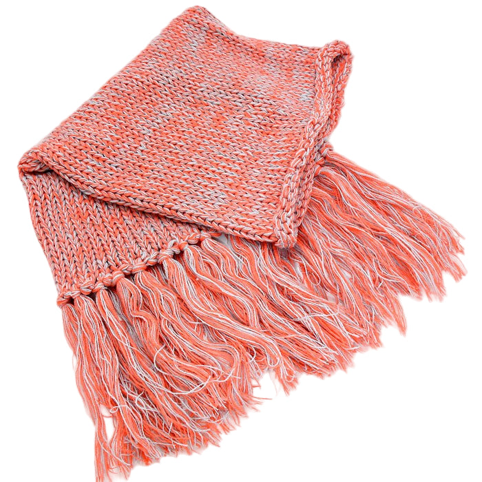 Fringe Drop Two Tone Knit Snood Scarf featuring a cozy knit design in two complementary colors. The fringe detail adds a stylish touch, making it perfect for layering in cooler weather. A versatile accessory that combines warmth and fashion effortlessly.