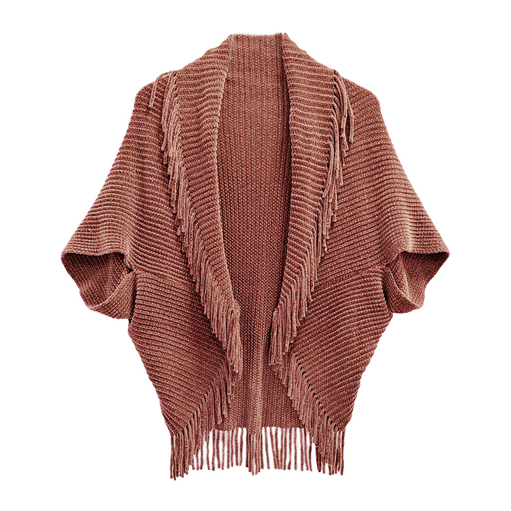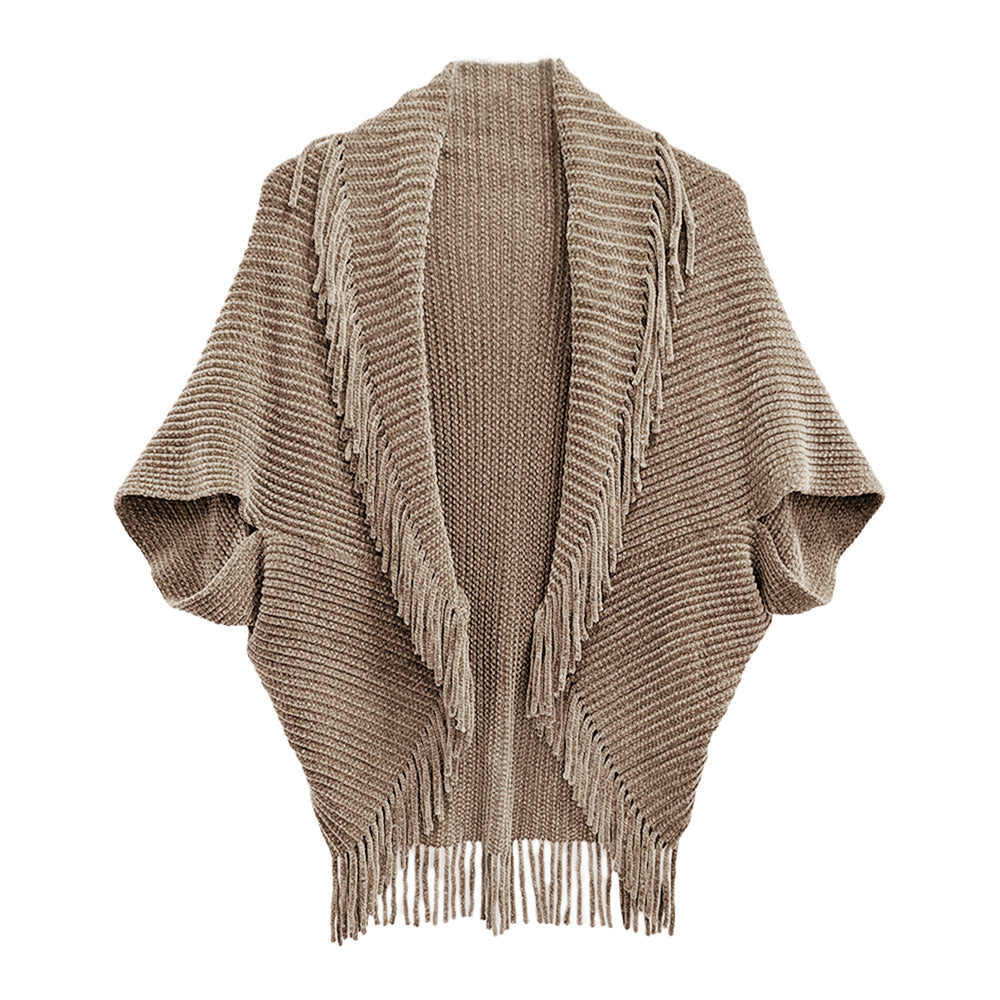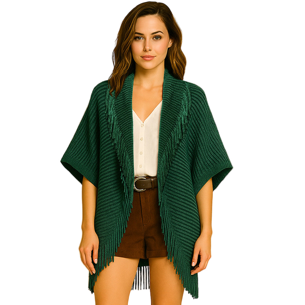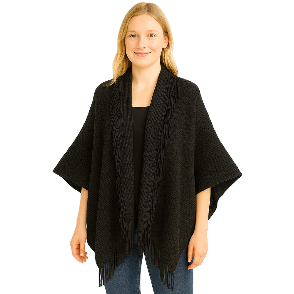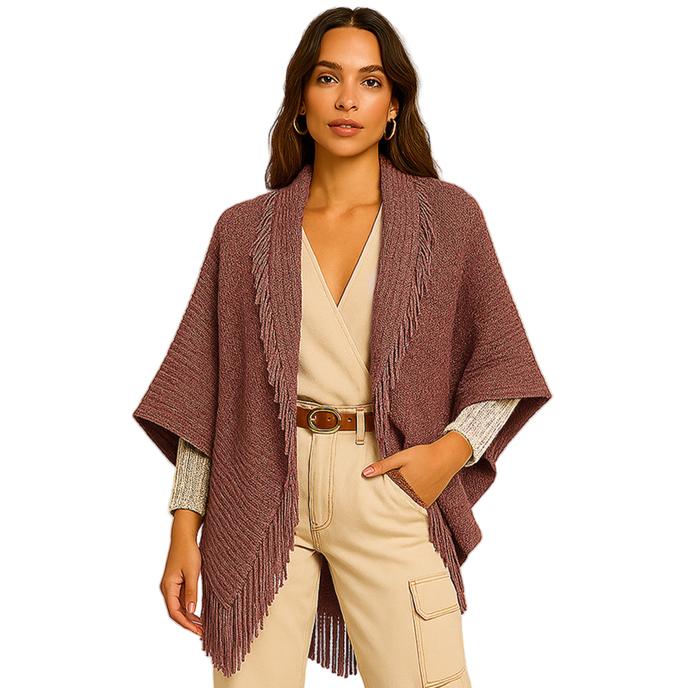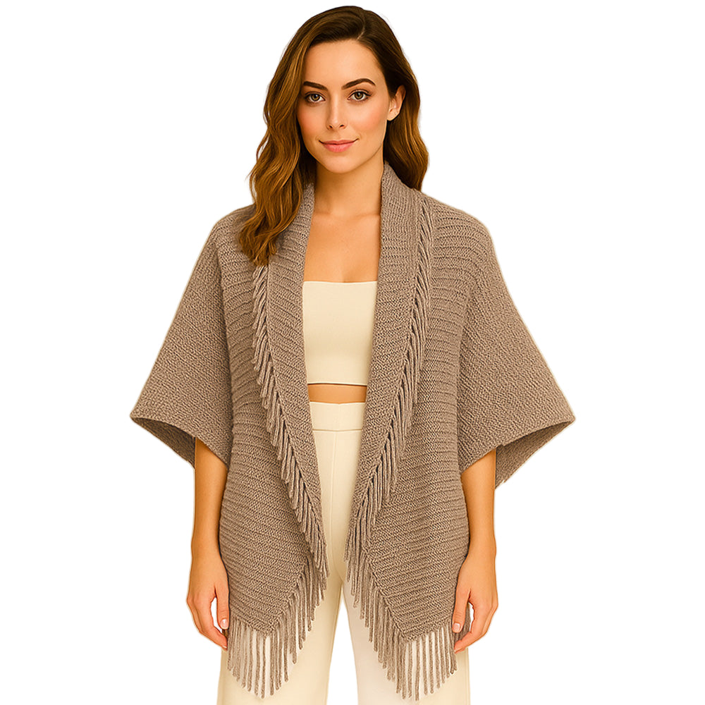 A chic layering piece that wraps you in soft knit comfort, finished with stylish fringe trim. Perfect for elevating your fall outfits and equally lovely for the holiday season, making it a thoughtful Christmas gift too.