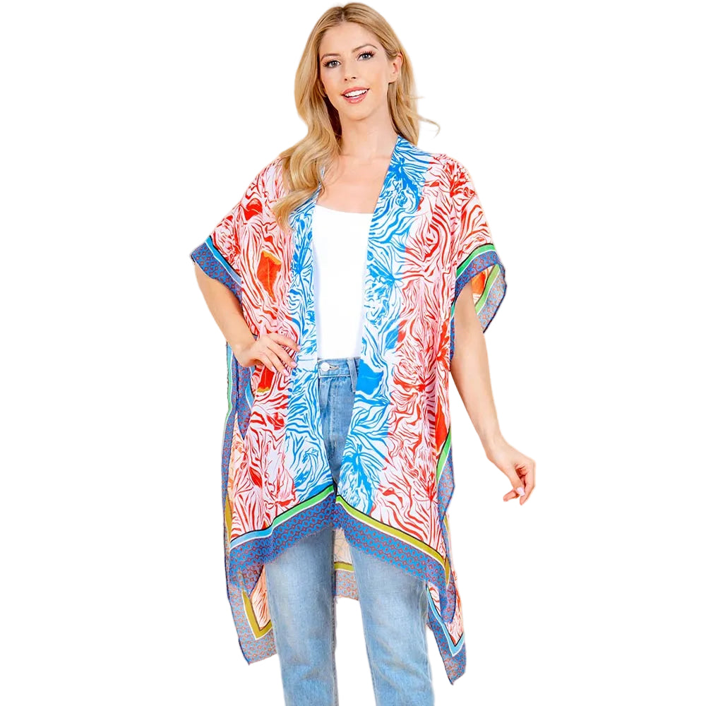 An airy open-front kimono poncho with a shadow floral pattern. Designed for effortless layering with a flowy, comfortable fit.