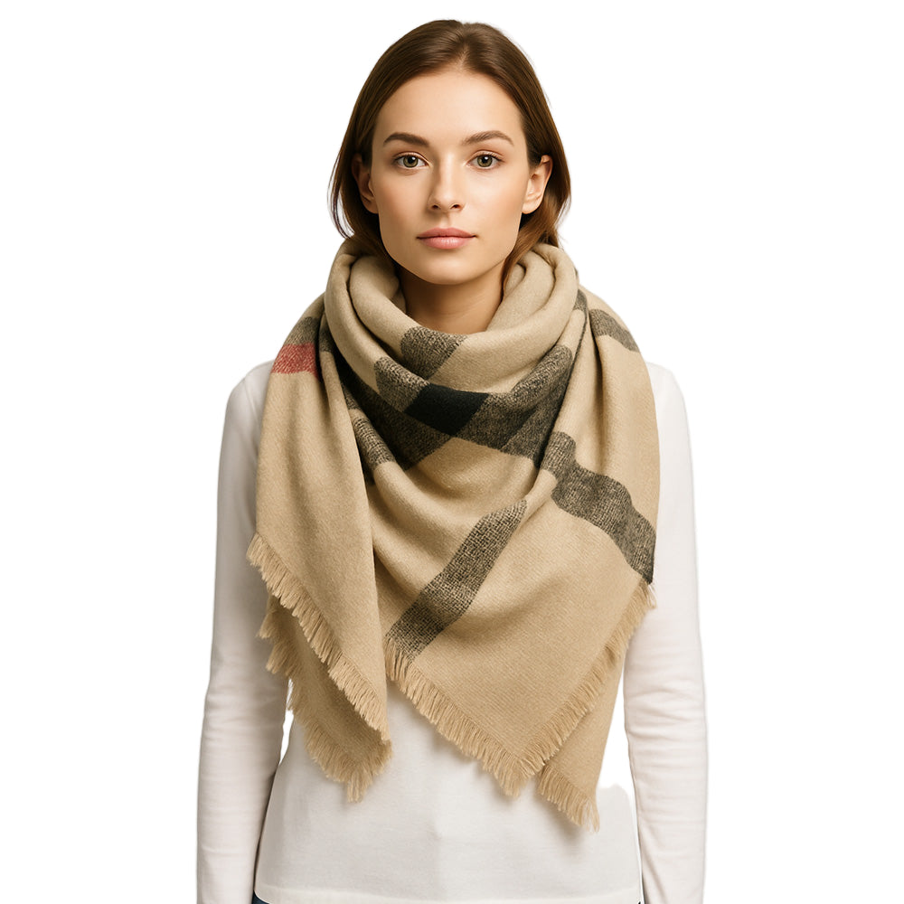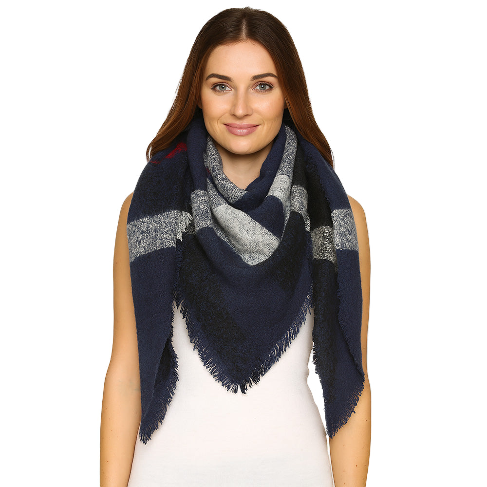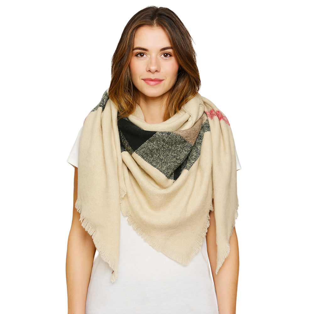 Soft and cozy with a classic plaid design, this blanket scarf is perfect for fall or winter while adding a pop of color to your look.