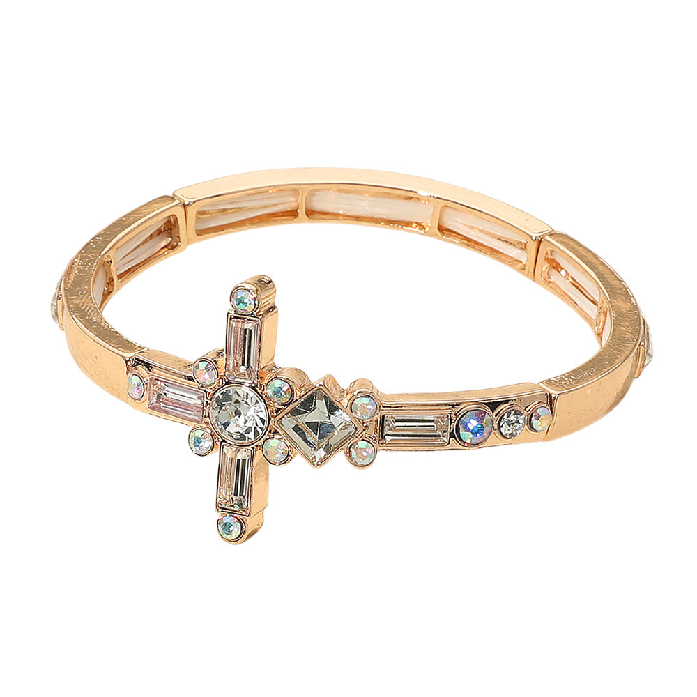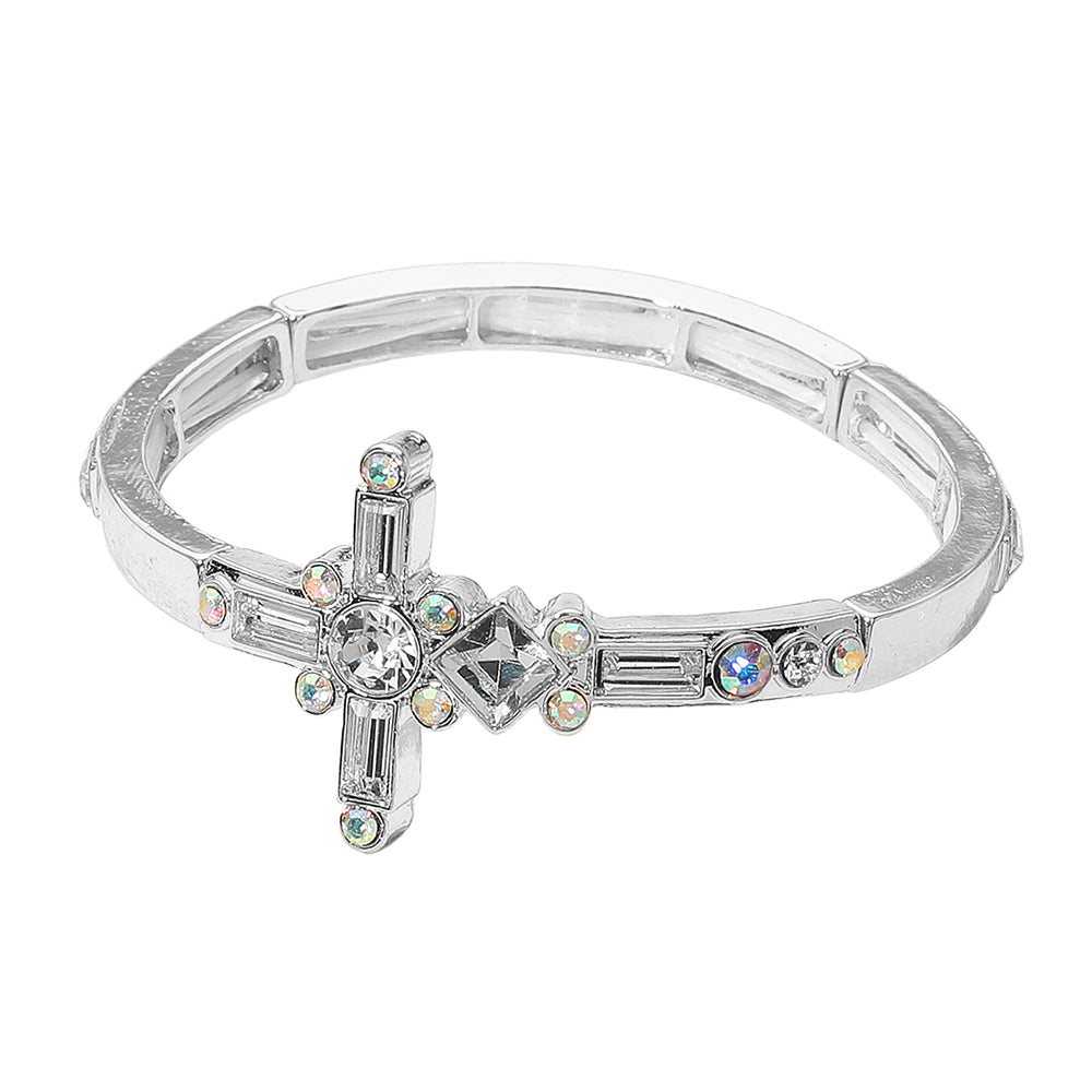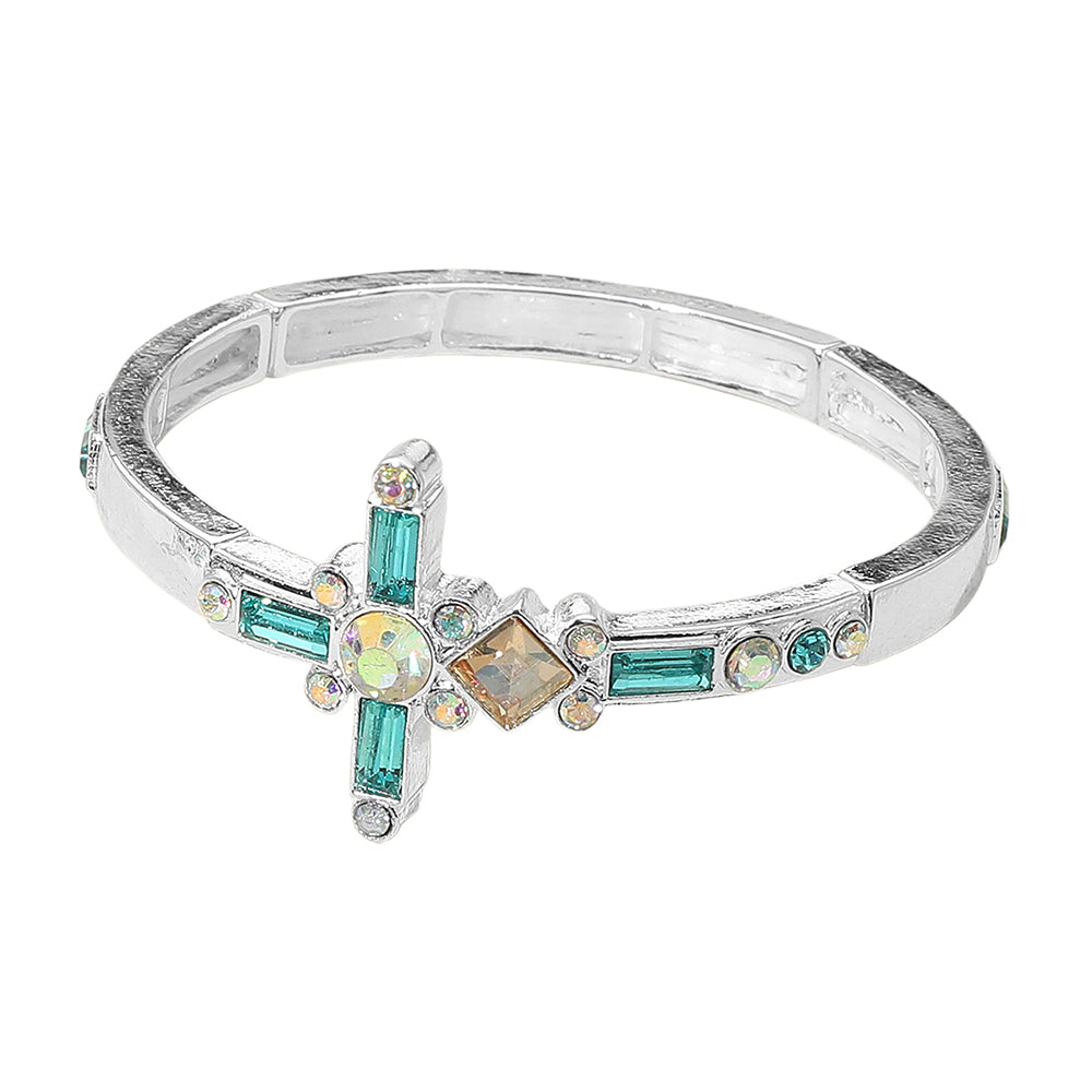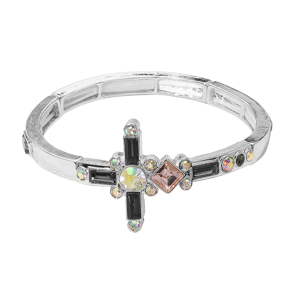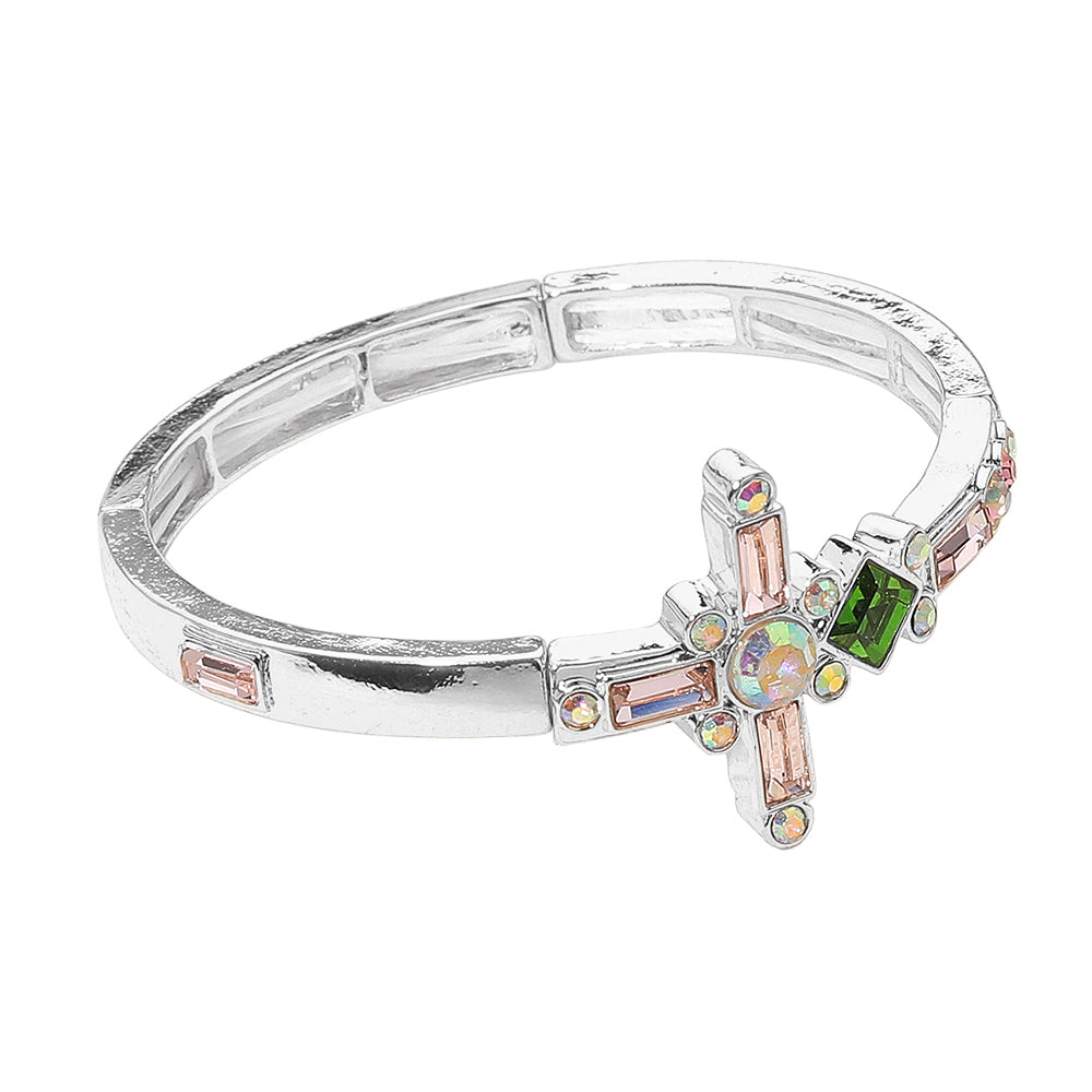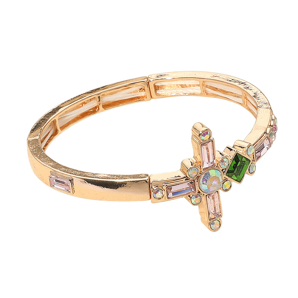 This stretch bracelet features a mix of natural stones accented with a metal cross charm. A simple yet meaningful piece that blends style and faith beautifully. Each bracelet is unique, with slight variations in the stone colors that make every piece one of a kind.