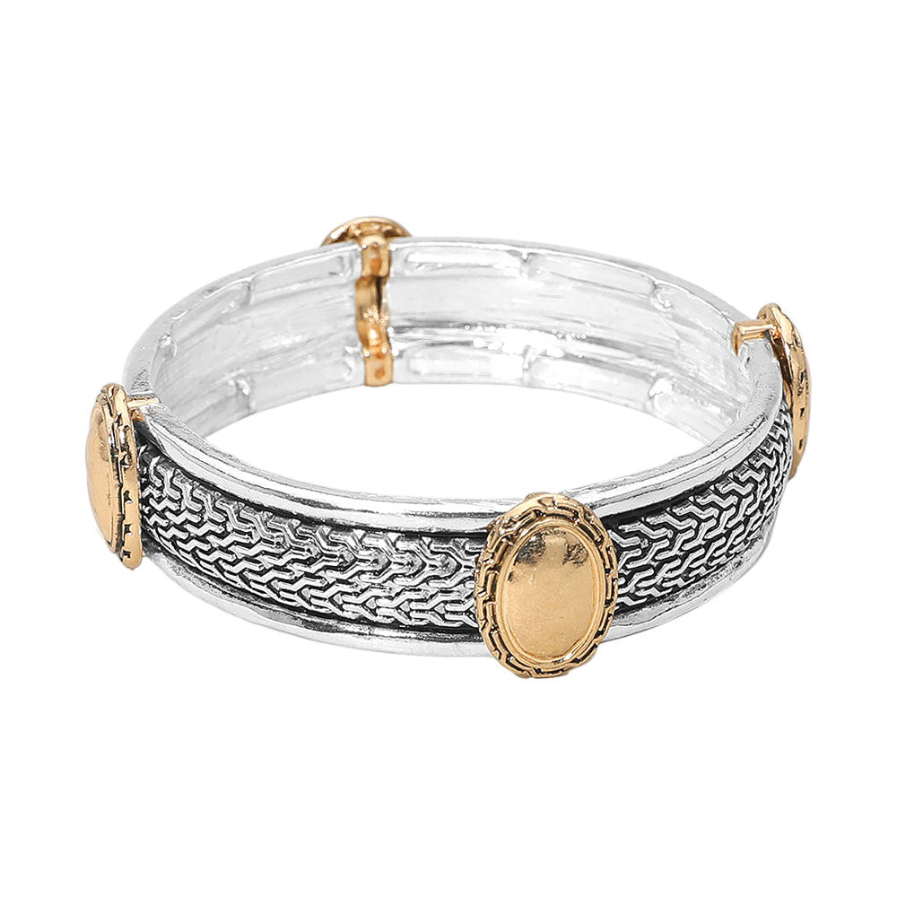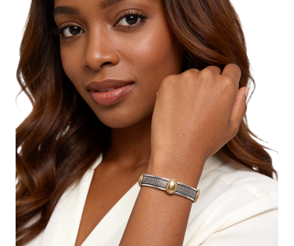 This oval cameo stretch bracelet brings effortless style with textured details and framed charm accents. The flexible slip-on design offers comfortable, easy wear throughout the day.