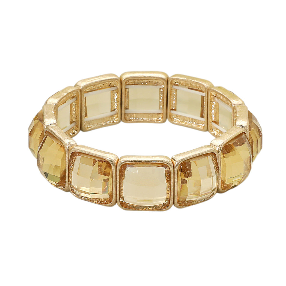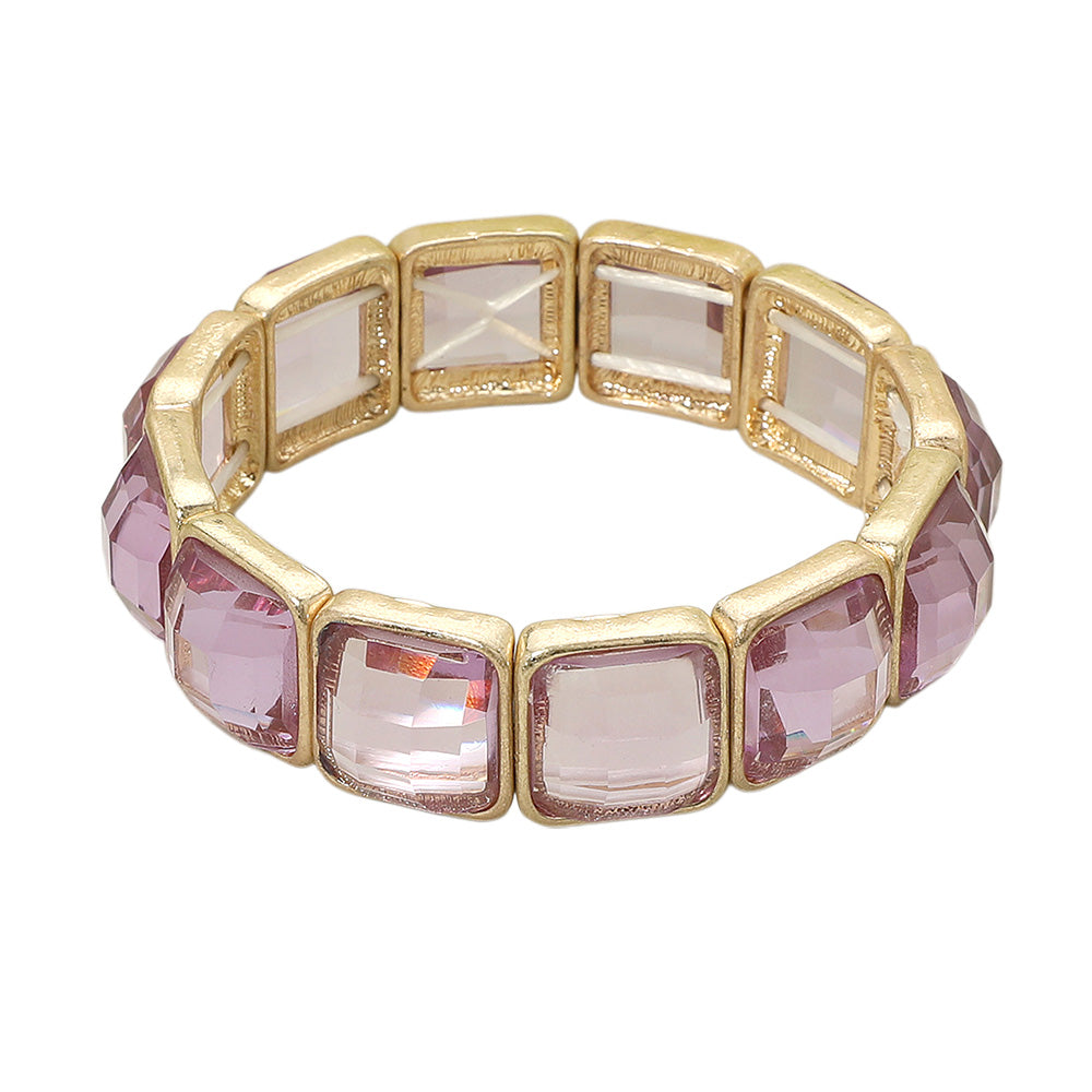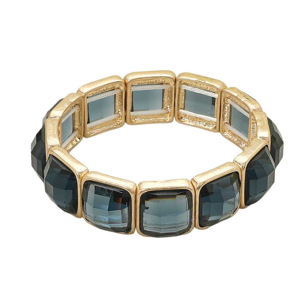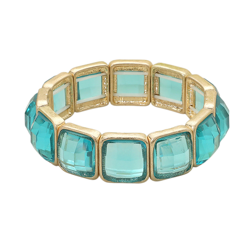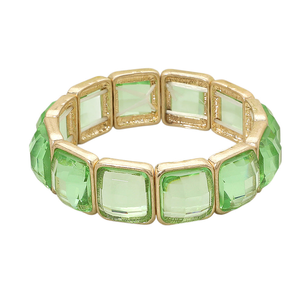 Stretchable beaded bracelets featuring square faceted gemstone frames for a pop of color and shine. Easy to slip on and wear alone or stacked for a bold statement.