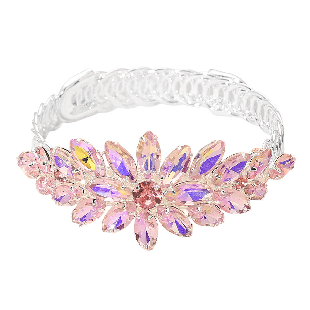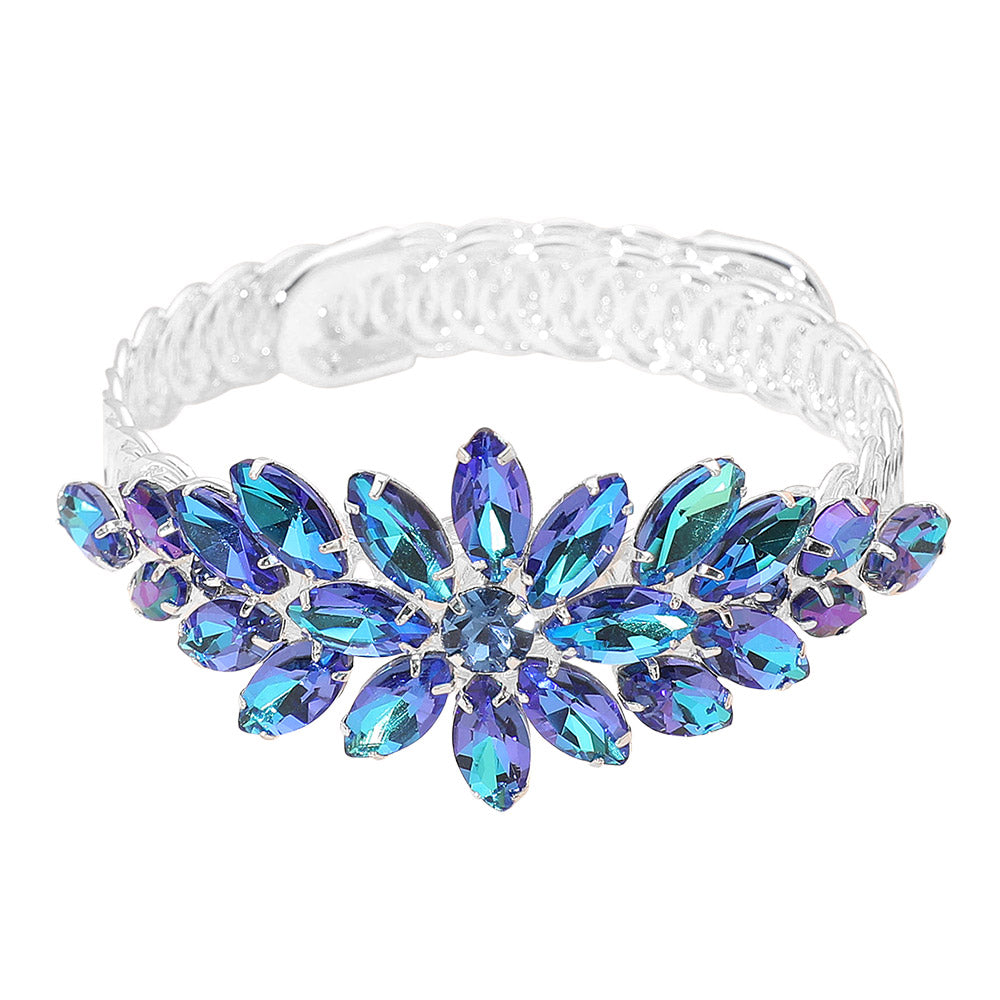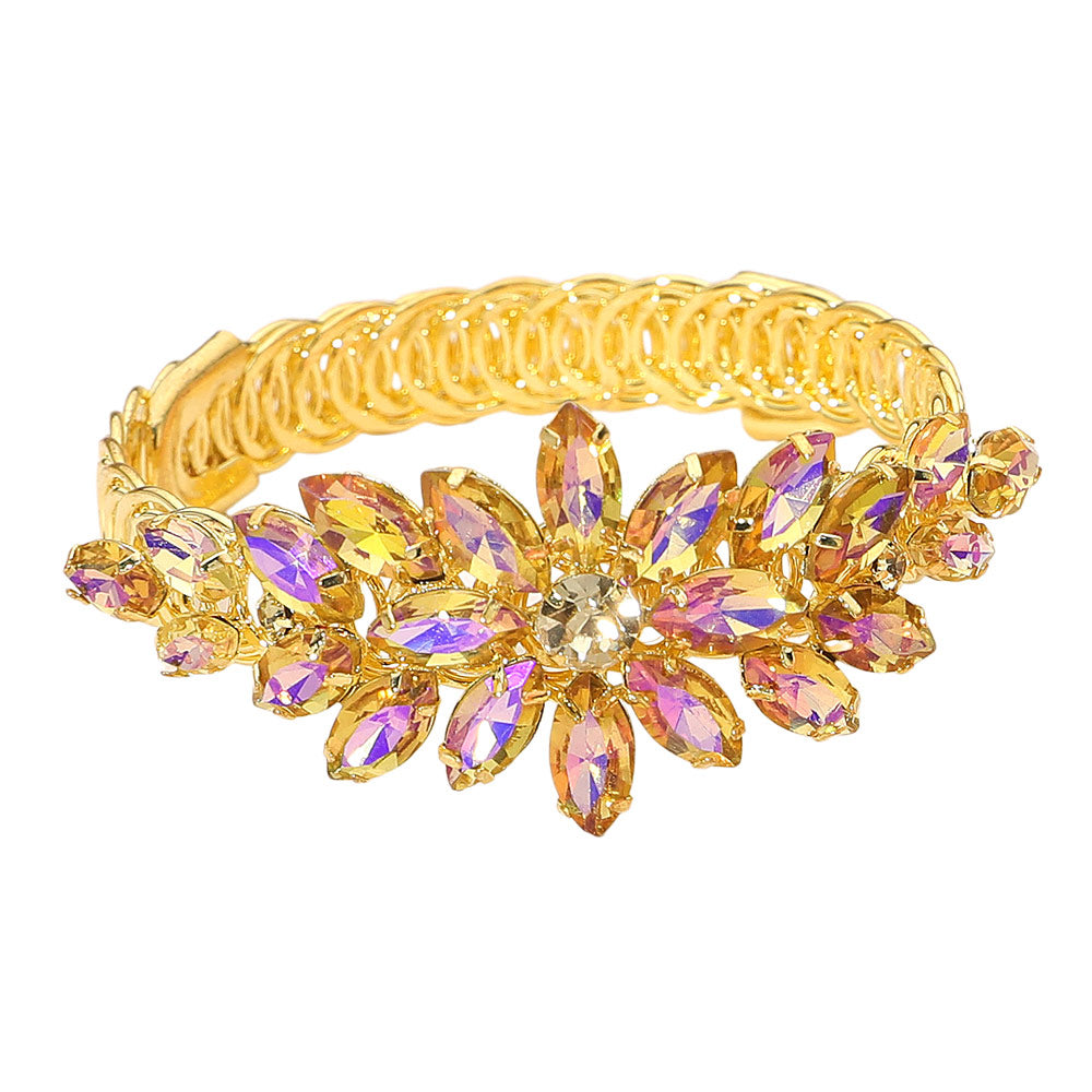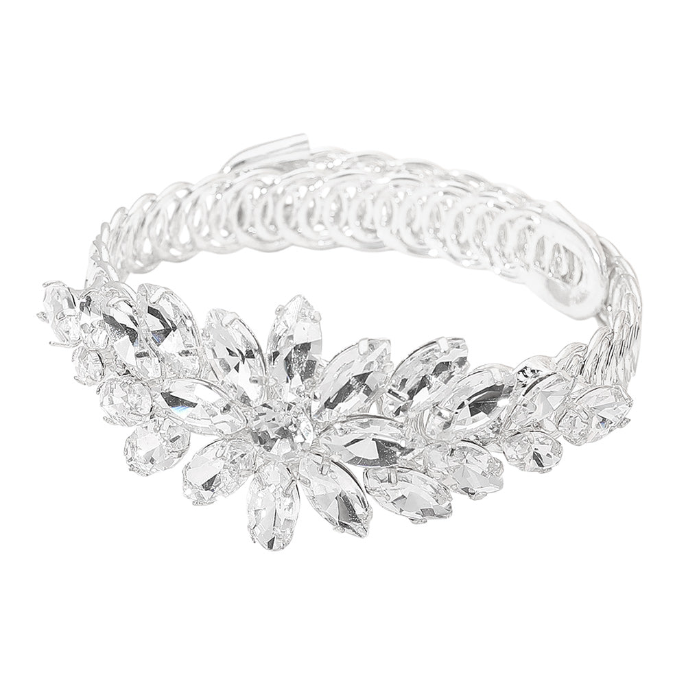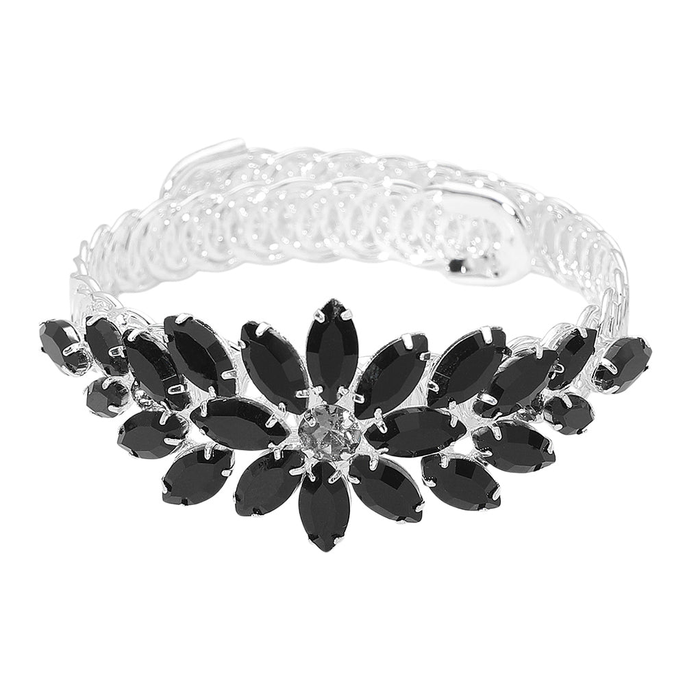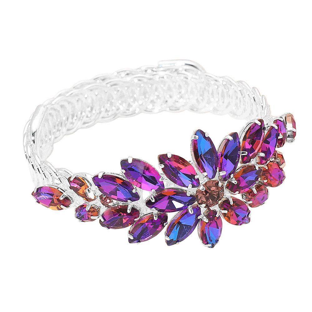 Bring a touch of elegance to your look with this adjustable cuff bracelet featuring a marquise floral stone cluster design. Its open cuff style ensures a comfortable fit while adding just the right amount of sparkle. Perfect for dressing up or adding charm to your everyday outfit.