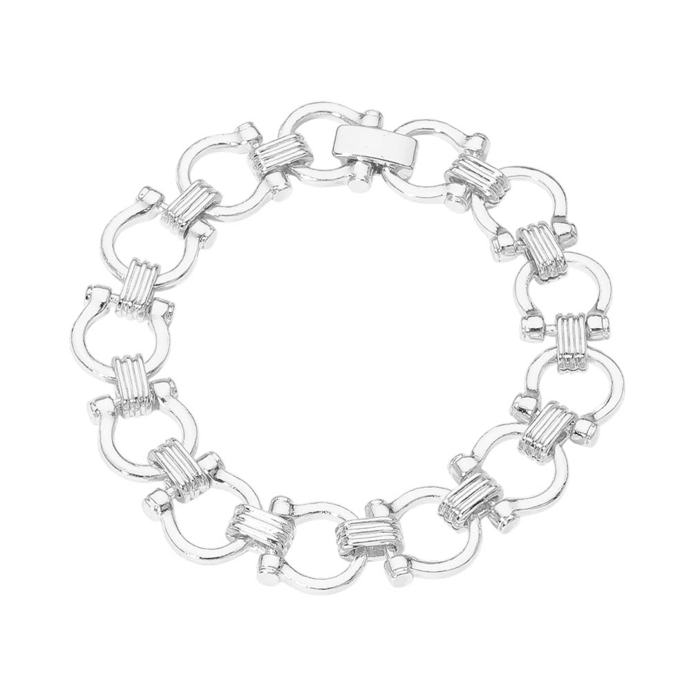Make a statement with this bold metal link chain bracelet. Designed with oversized links and a sleek finish, this piece brings a confident, modern touch to any look. Wear it solo for a strong, standout vibe or pair it with your favorite stack for added impact. It’s the kind of bracelet that instantly pulls your look together.