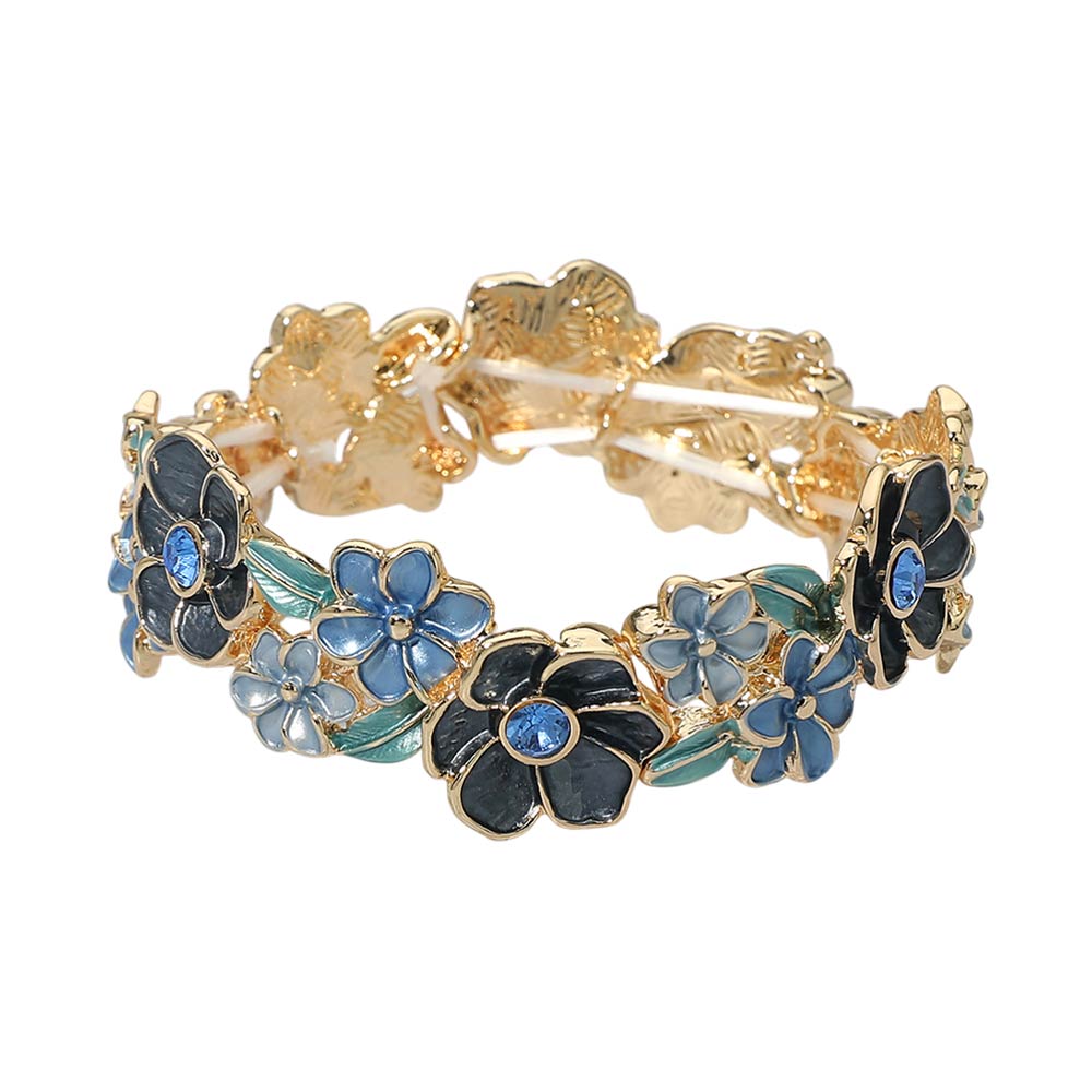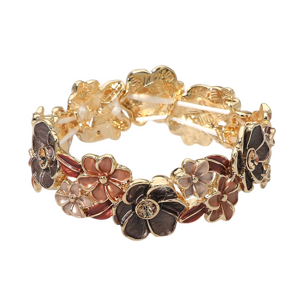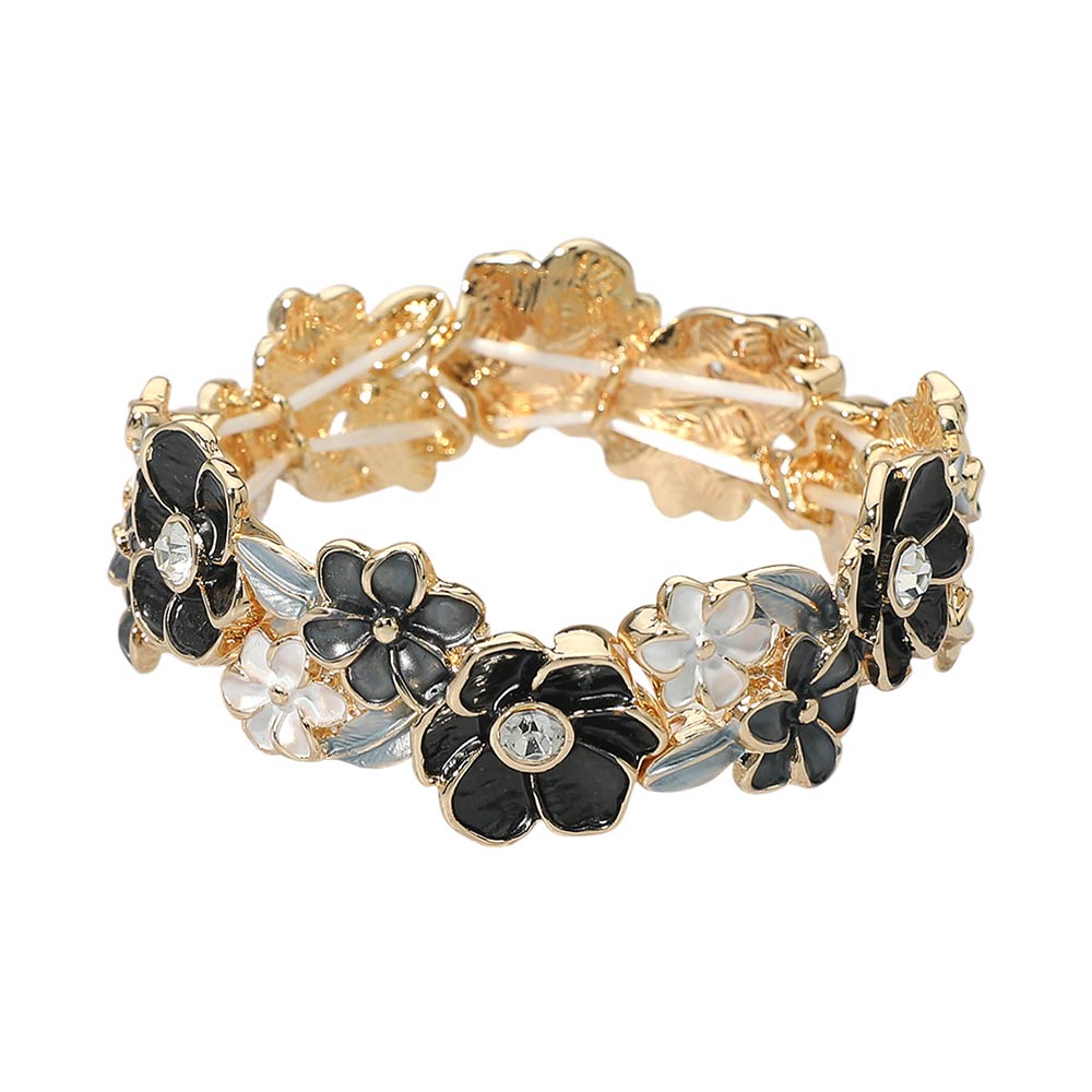 Add a pop of color and charm with this Stone Center Floral Enamel Stretch Bracelet. Featuring a vibrant floral enamel design with a sparkling stone at the center, it blends playful detail with polished style. The stretch band makes it easy to wear alone or stacked with other bracelets for a chic, layered look.