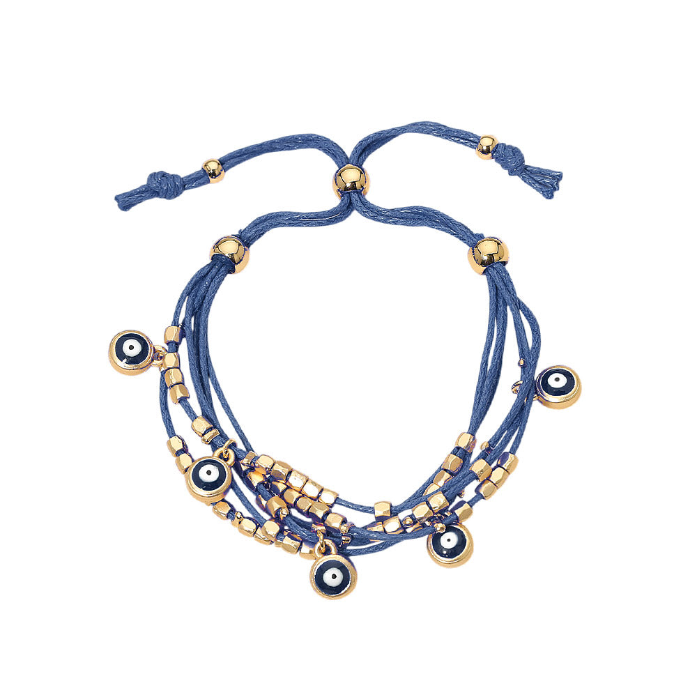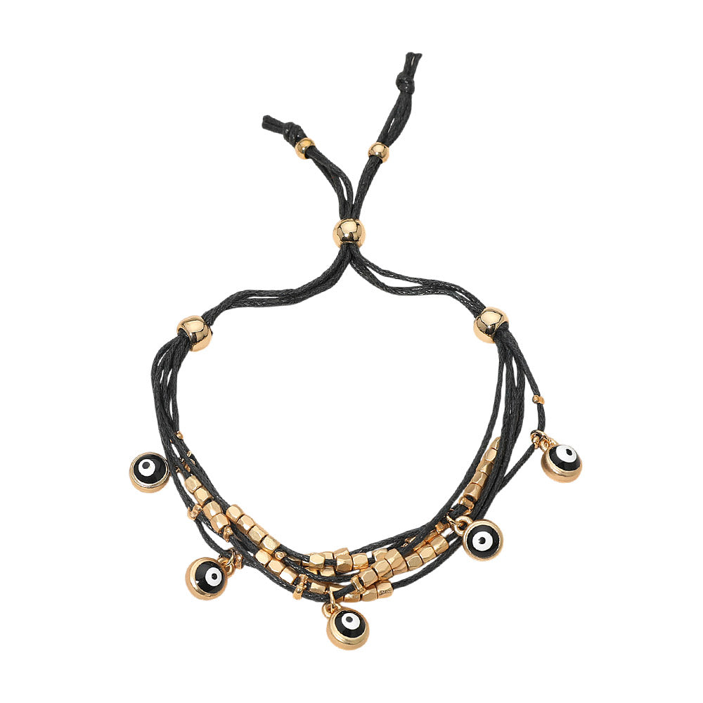 Add meaningful style to your wrist with this evil eye charm beaded multi-layered bracelet. Designed with layered beads and a protective evil eye charm, this piece blends spiritual symbolism with modern, casual charm. The adjustable cinch pull tie closure makes it easy to customize the fit, offering comfortable wear for any wrist size. Perfect for stacking or wearing solo for a subtle statement.