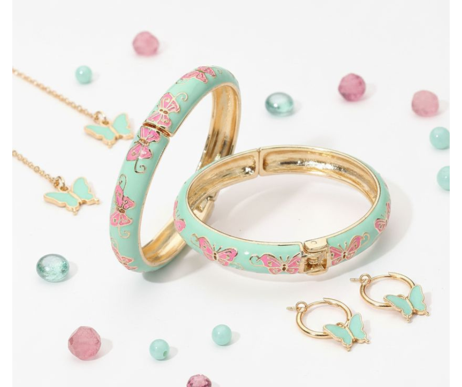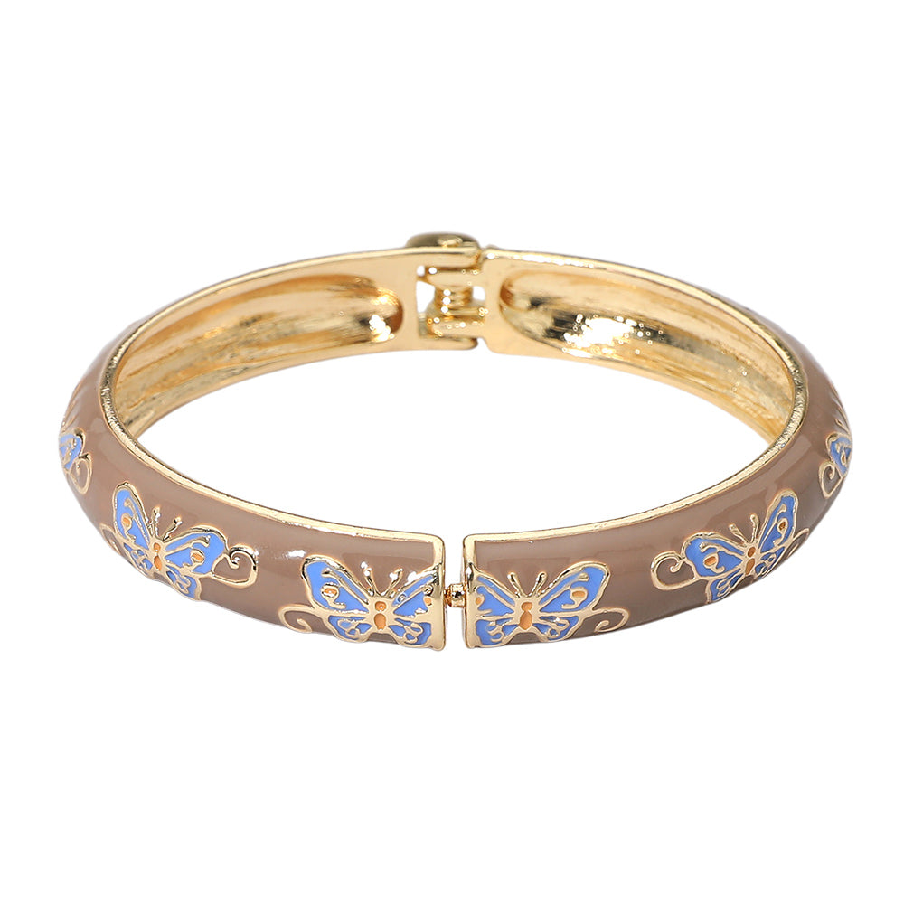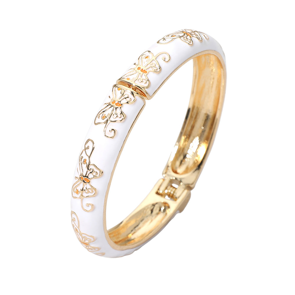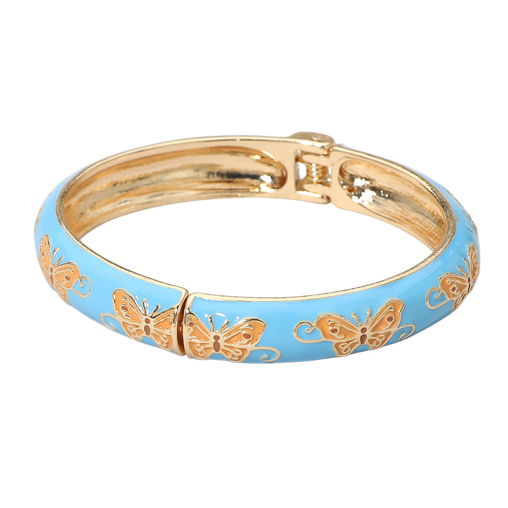 Add a whimsical touch to your look with this Butterfly Enamel Hinged Bangle Bracelet. Featuring a beautifully detailed enamel butterfly and a sleek hinged design, it blends playful charm with polished style. Perfect for stacking or wearing on its own, it brings a graceful pop of color and shine to any outfit.