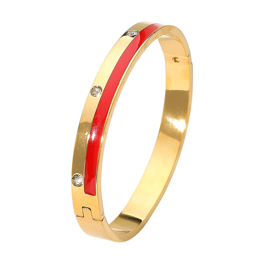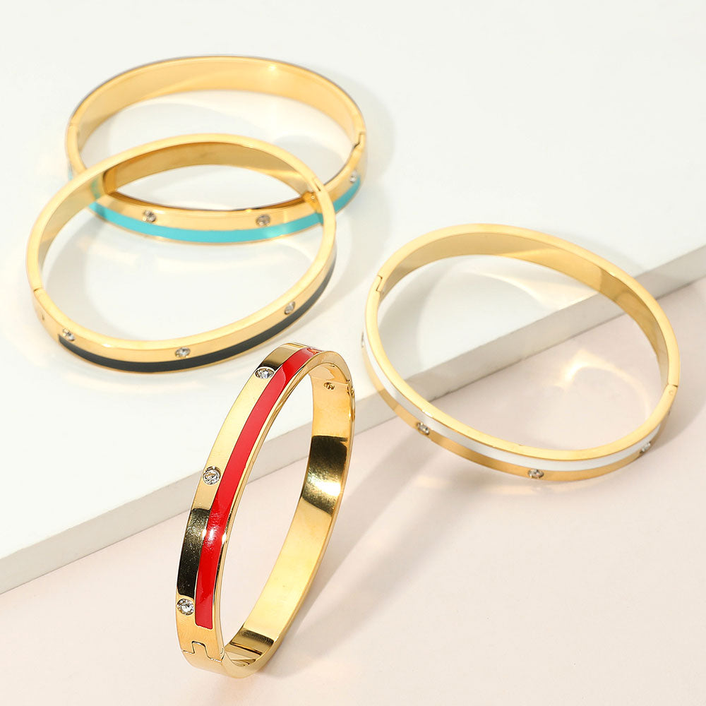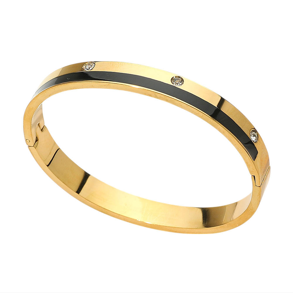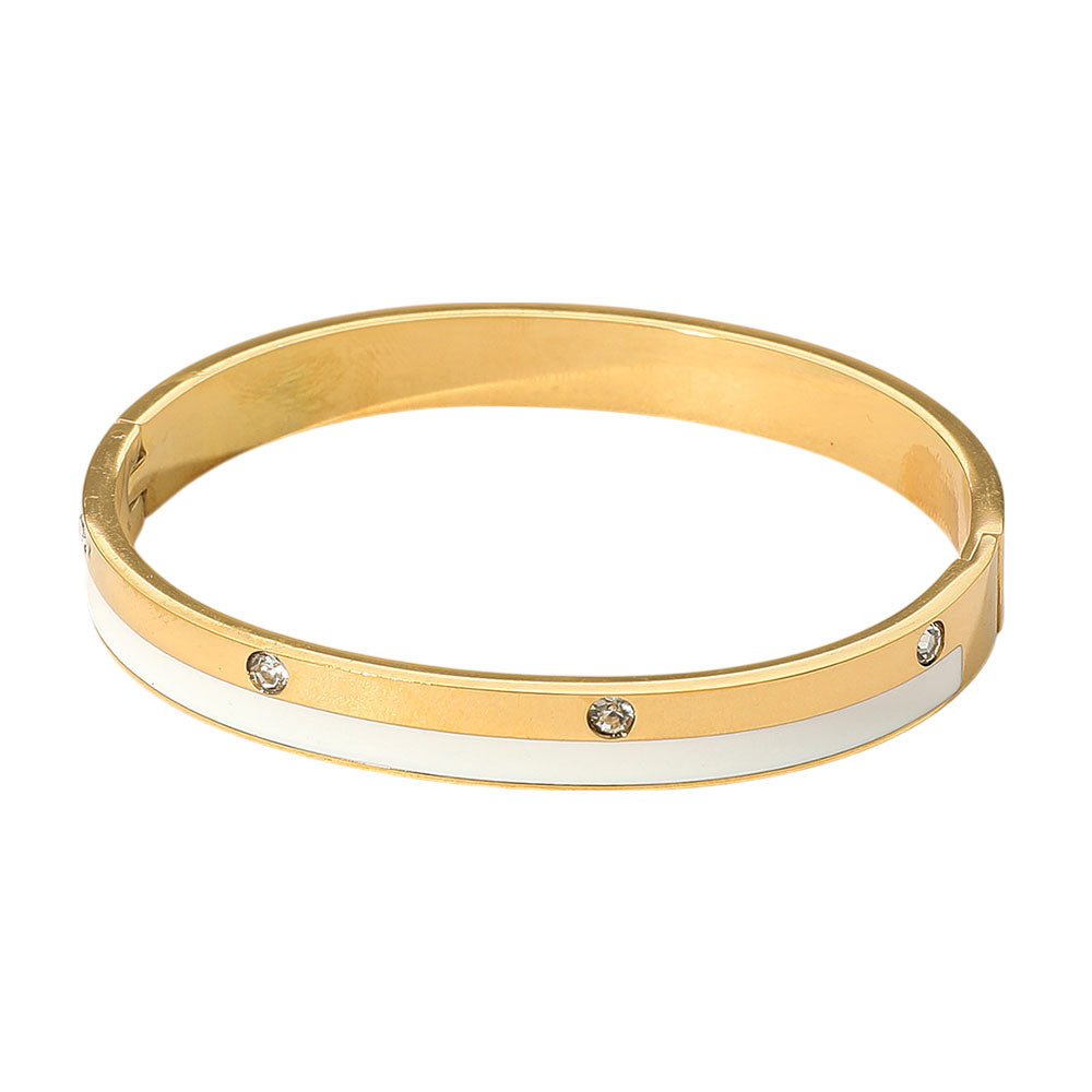 Add shine to your stack with this stainless steel hinged bangle bracelet, detailed with a smooth enamel inlay and sparkling cubic zirconia accents. A bold and easy-to-wear piece that mixes effortlessly with other favorites.
