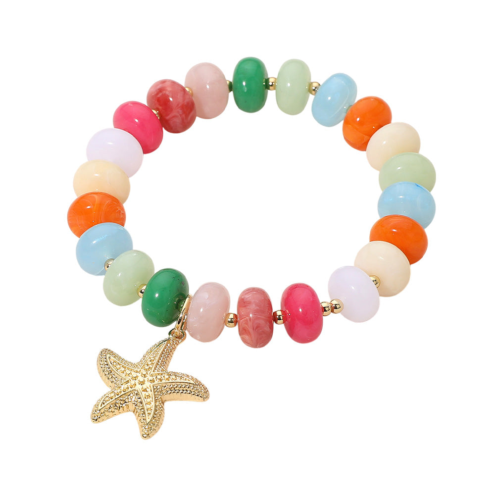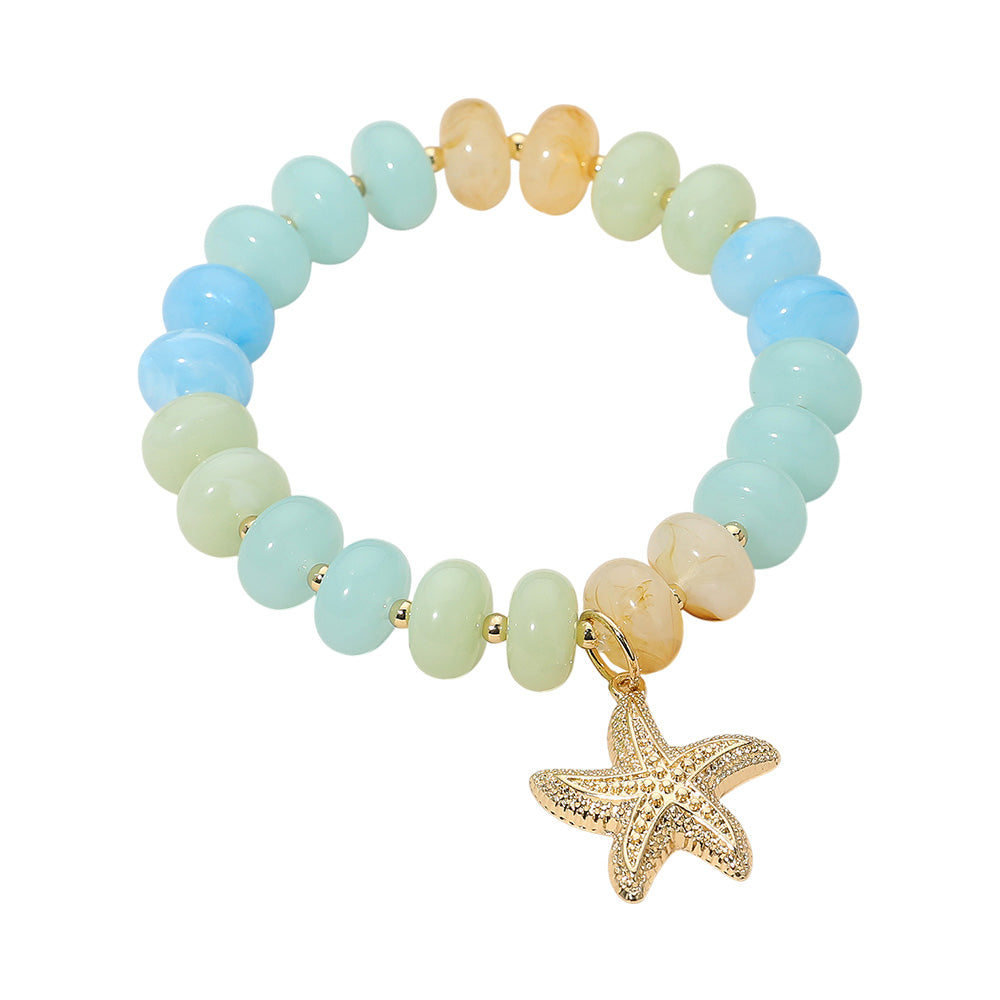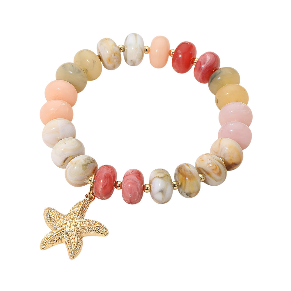 A charming stretch bracelet featuring smooth resin pebble beads paired with a playful starfish charm. Comfortable, lightweight, and easy to slip on—perfect for adding a fun coastal touch to your everyday style.