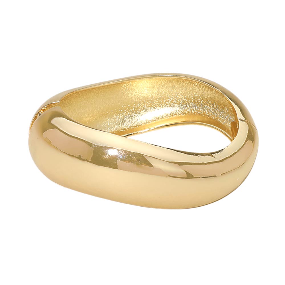 Elevate your accessory game with this Metal Sculpted Dome Hinged Bangle Bracelet. Designed with a smooth, sculpted dome silhouette and a secure hinged closure, it delivers bold shine with modern elegance. Wear it solo for a sleek statement or stack it for a chic, layered look.
