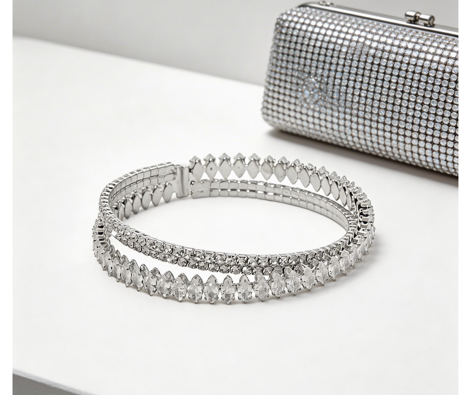Add graceful sparkle to your jewelry collection with this marquise cubic zirconia stone dual row adjustable cuff bracelet. Designed with two sleek rows and shimmering marquise-shaped cubic zirconia stones, this cuff delivers a refined and eye-catching look. The open adjustable design allows for a comfortable fit while making it easy to pair with both everyday outfits and dressy styles.