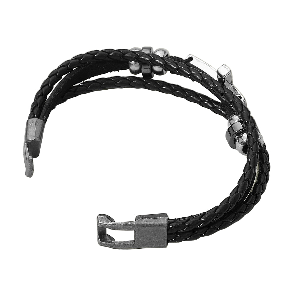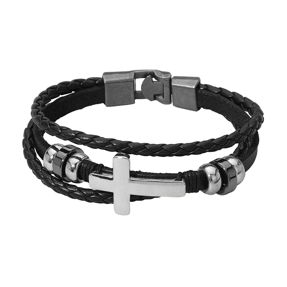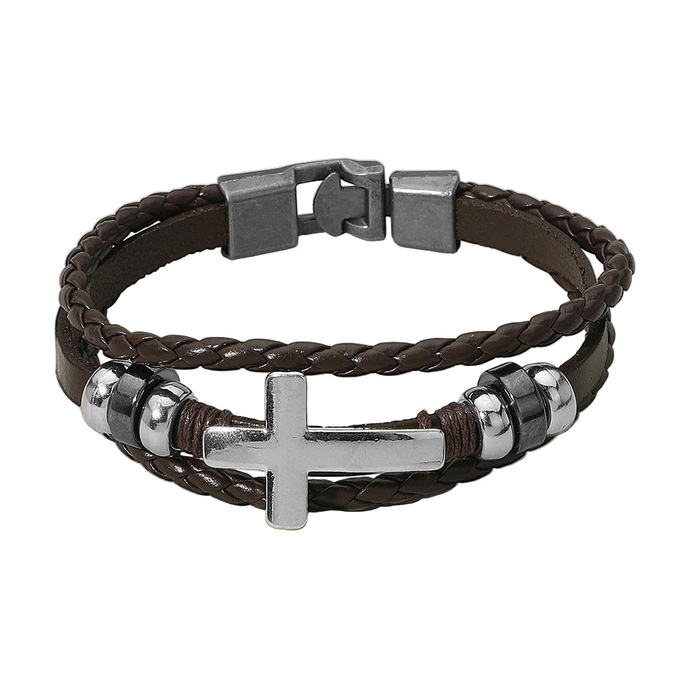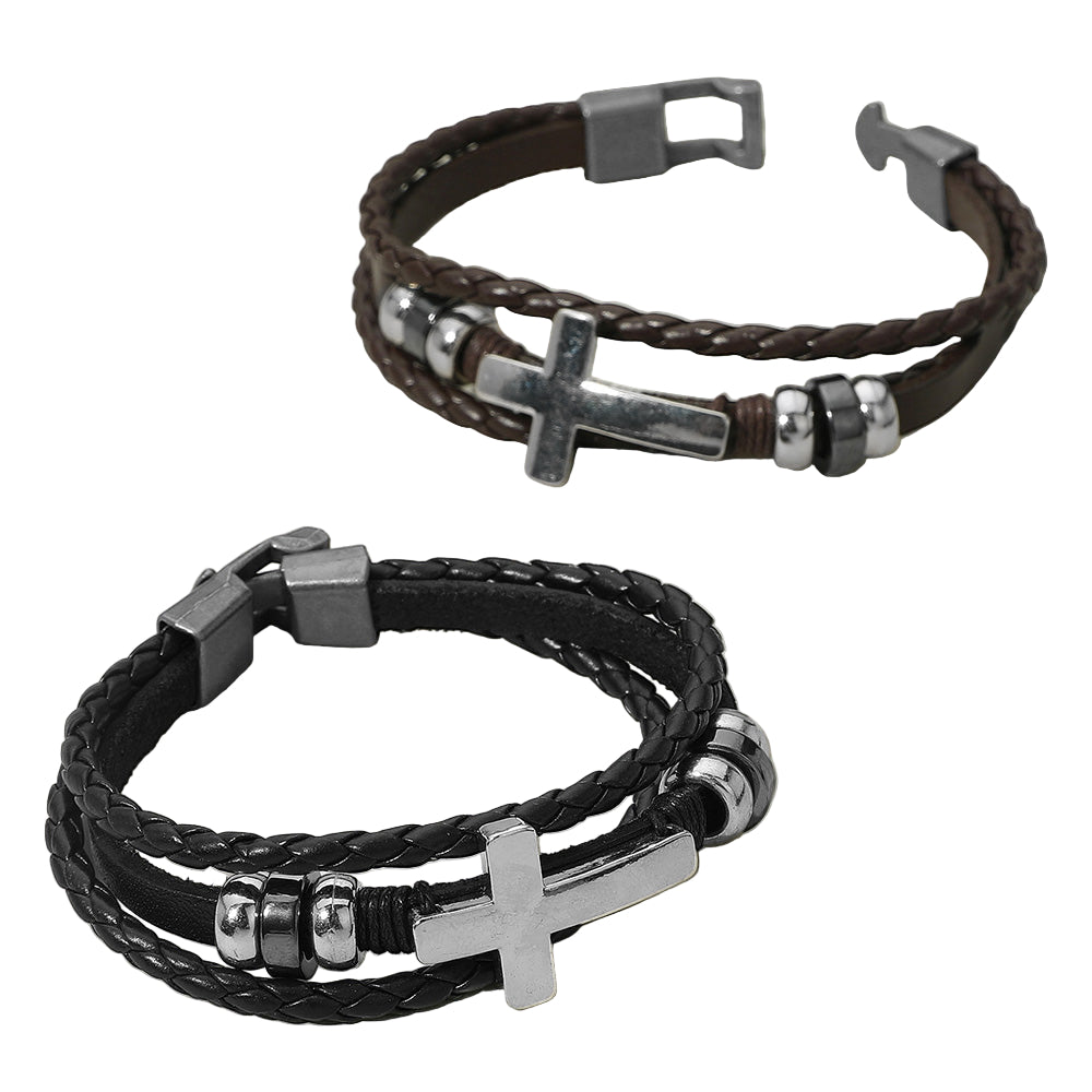 Stylish men’s bracelet featuring genuine leather in black or brown, accented with metal cross and bead details. Durable and versatile, it adds a rugged yet polished touch to any outfit.