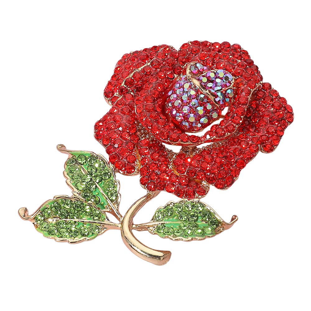 Add a touch of sparkle with this rhinestone embellished rose pin brooch, available in gold, silver, red, and pink. Elegant and versatile, it’s perfect for accessorizing jackets, scarves, hats, or gifting as a timeless keepsake.
