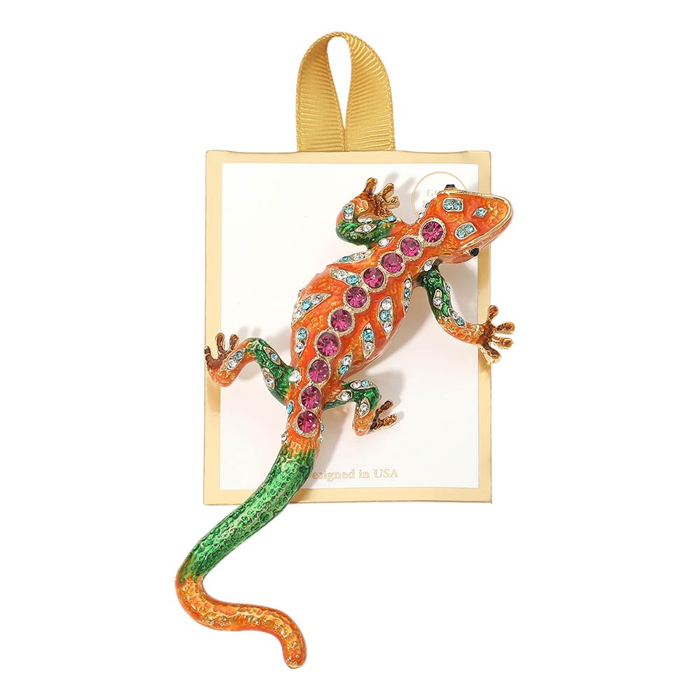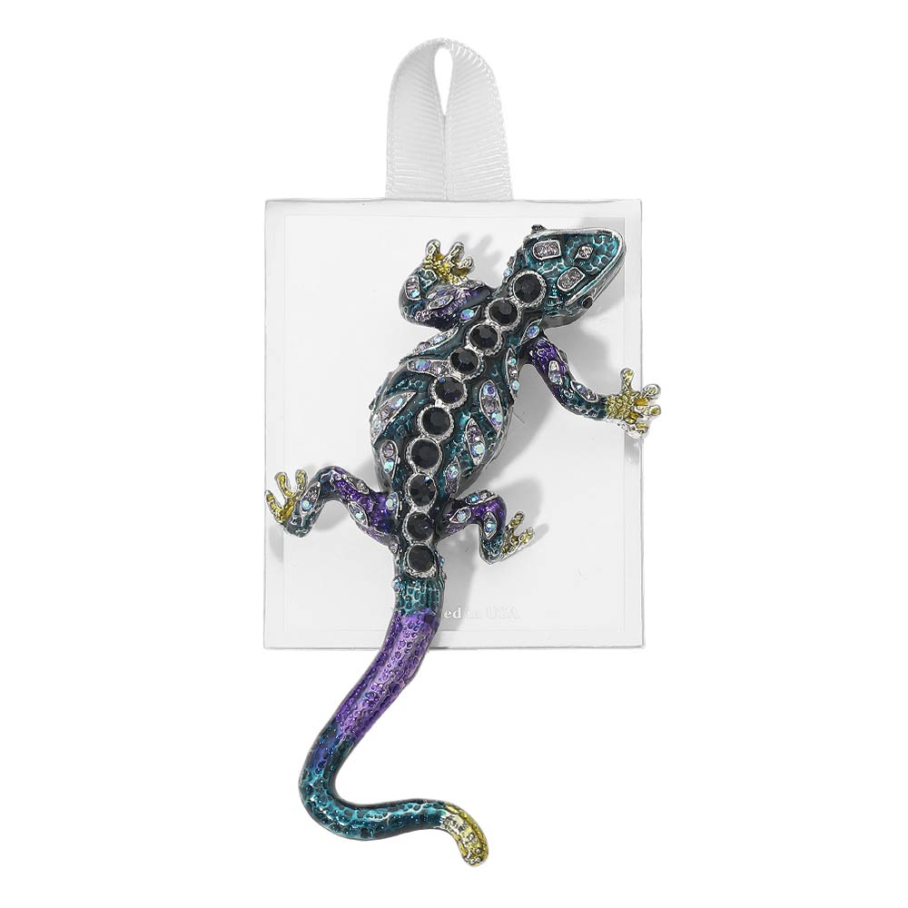 Add a touch of sparkle and personality with this rhinestone embellished gecko pin brooch. Designed with shimmering rhinestones that catch the light beautifully, this playful gecko brings charm and shine to any look. Perfect for pinning on blazers, handbags, scarves, or hats, it’s a fun statement piece that instantly elevates your accessories.