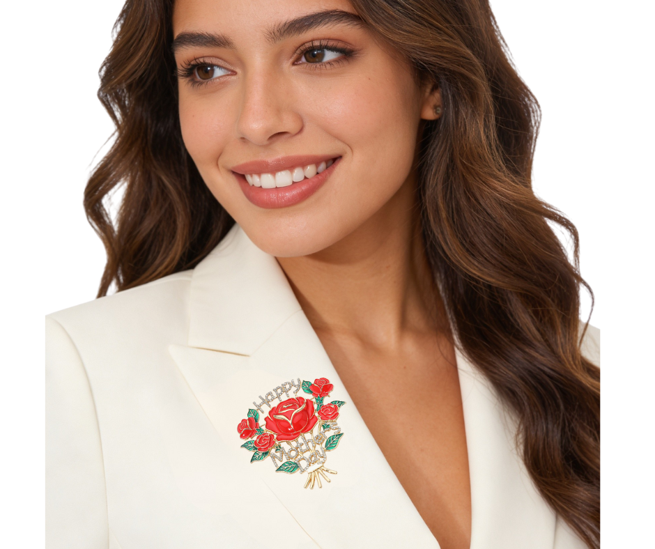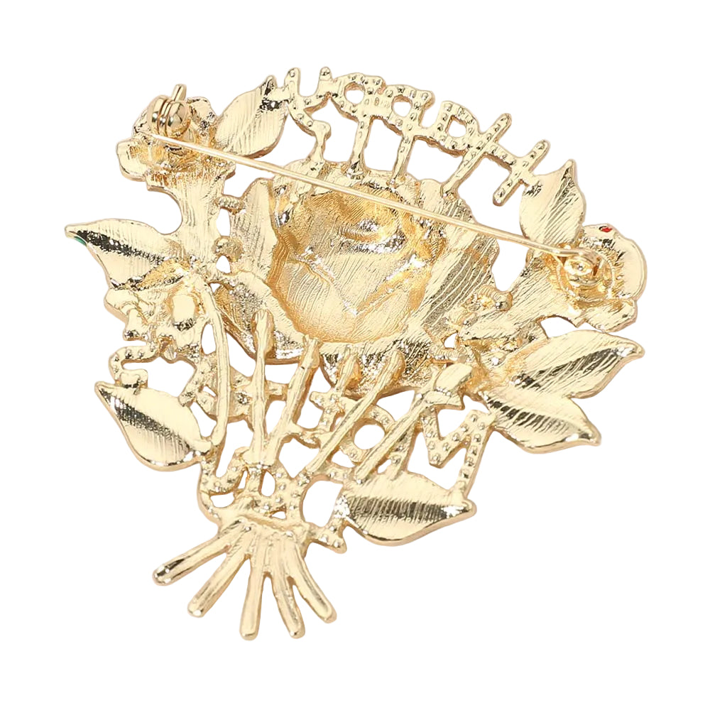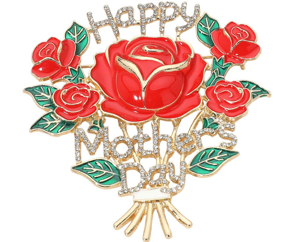 This pin brooch features a rose bouquet design with a “Happy Mother’s Day” message for a heartfelt touch. A sweet, meaningful accessory perfect for celebrating Mom and adding a special detail to any outfit.