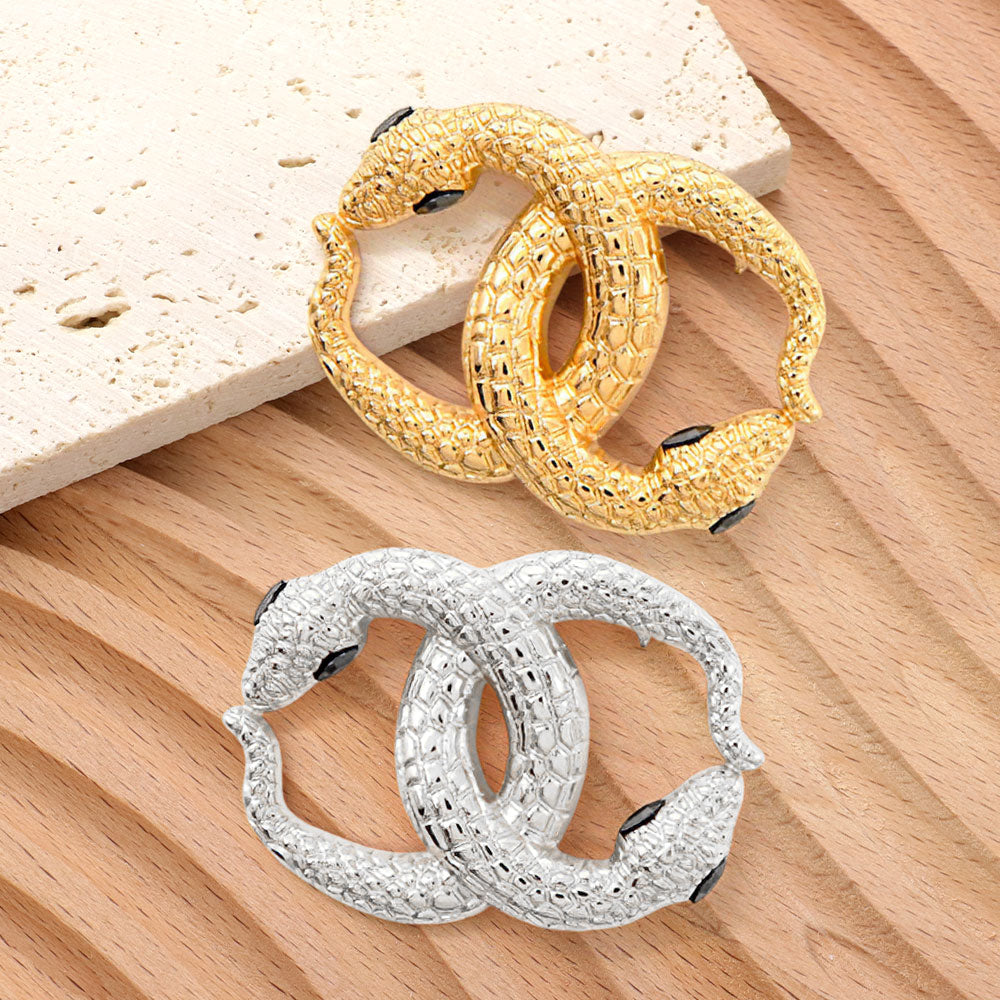 Stone Eyes Double Snake Pin Brooch featuring an intertwined snake design with sparkling stone accents for the eyes. Bold and detailed, this piece adds a unique statement to any outfit or accessory. Perfect for those who love distinctive and symbolic jewelry.