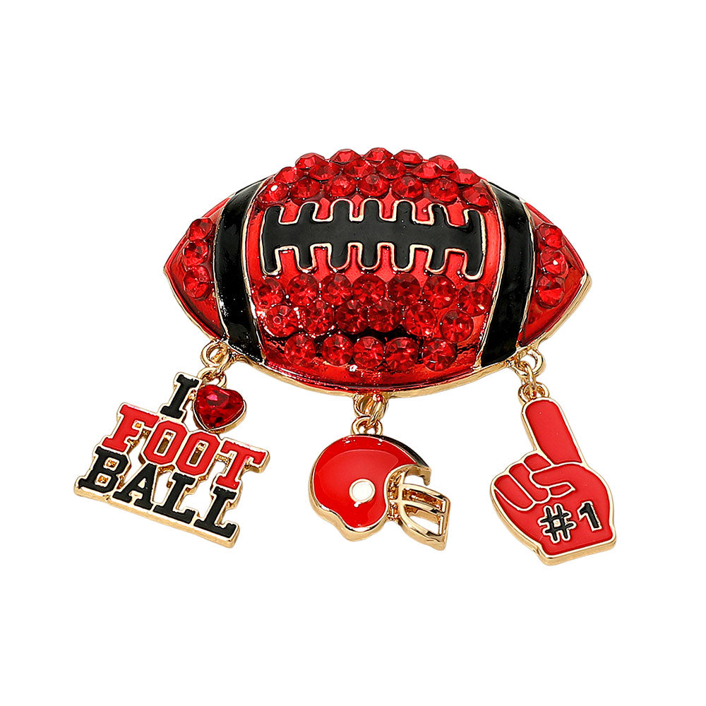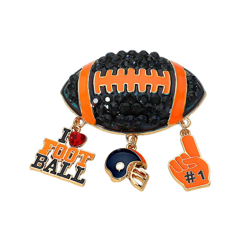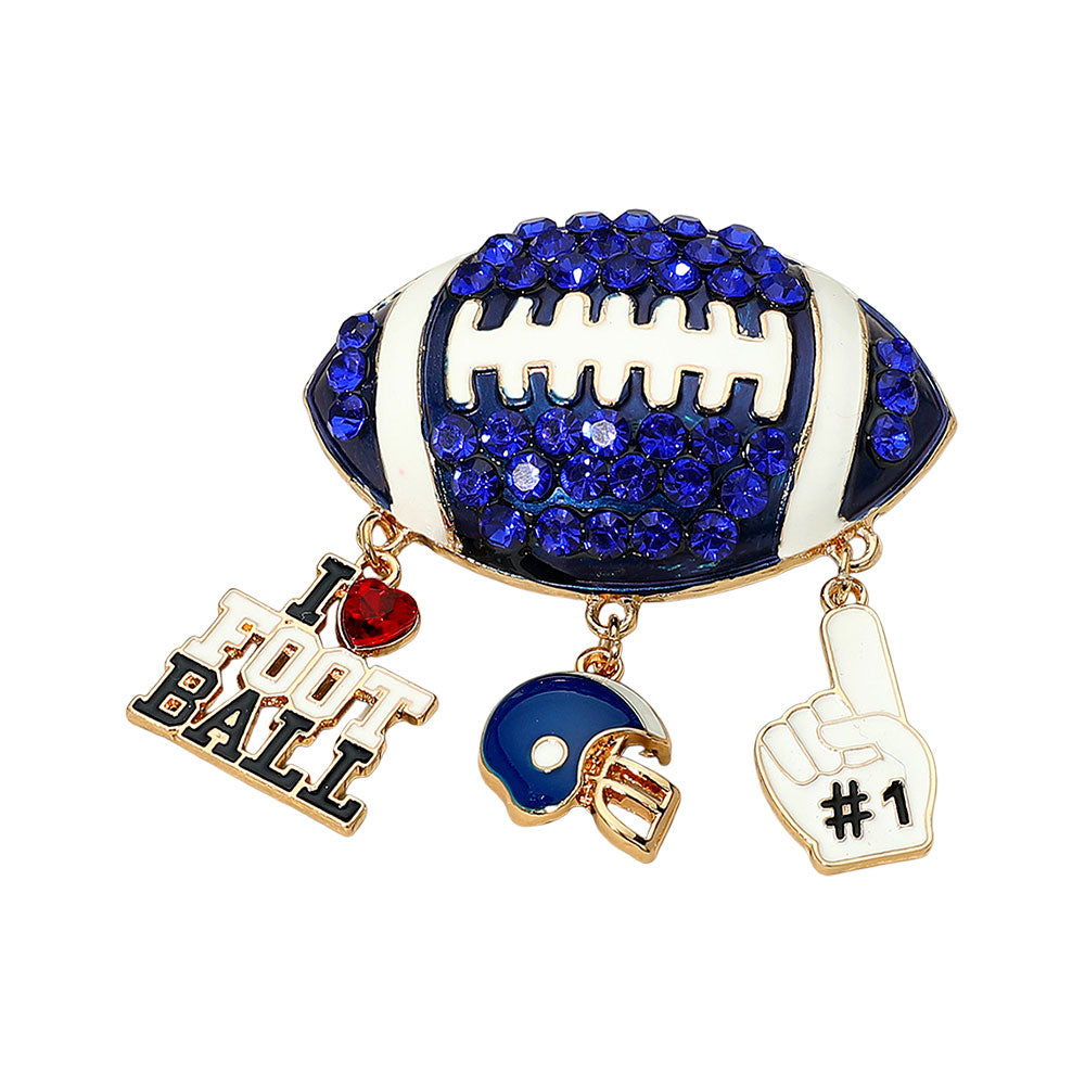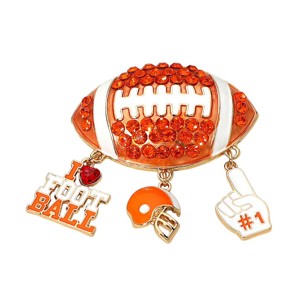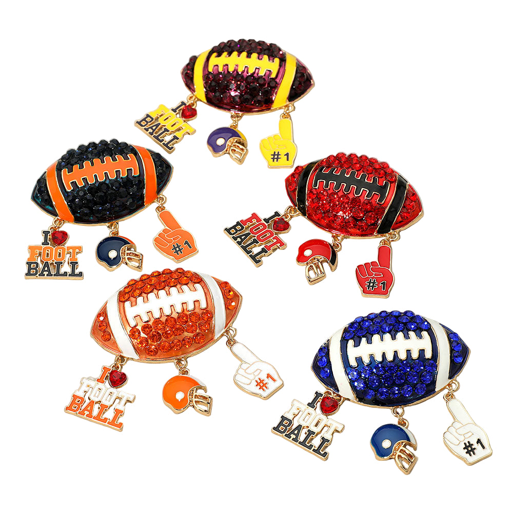 Bling Studded Football Pin Brooch featuring a detailed football design accented with sparkling rhinestones. A fun and eye-catching accessory perfect for game days or sports lovers. Add a touch of sparkle to jackets, hats, or bags.