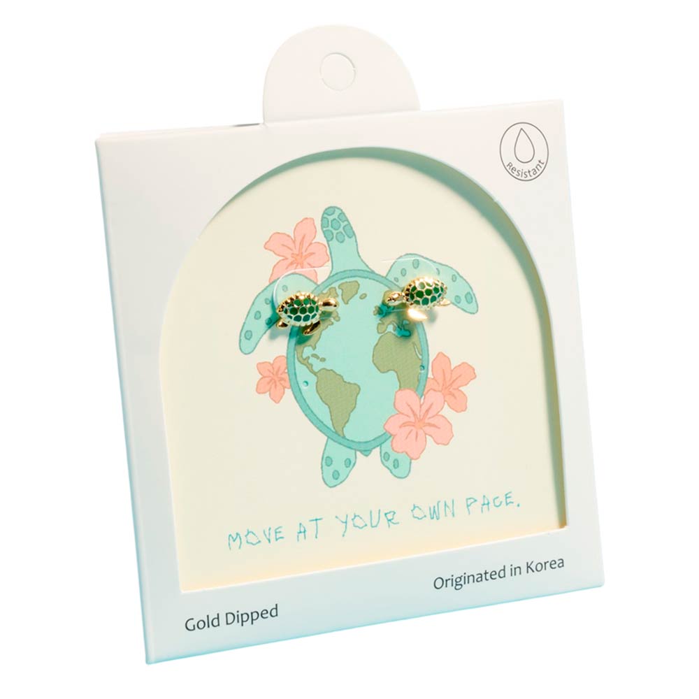 Gold dipped sea turtle mini stud earrings. Cute and ocean-inspired, perfect for adding a touch of coastal charm to any outfit. Small and versatile, great for everyday wear or layering with other studs.