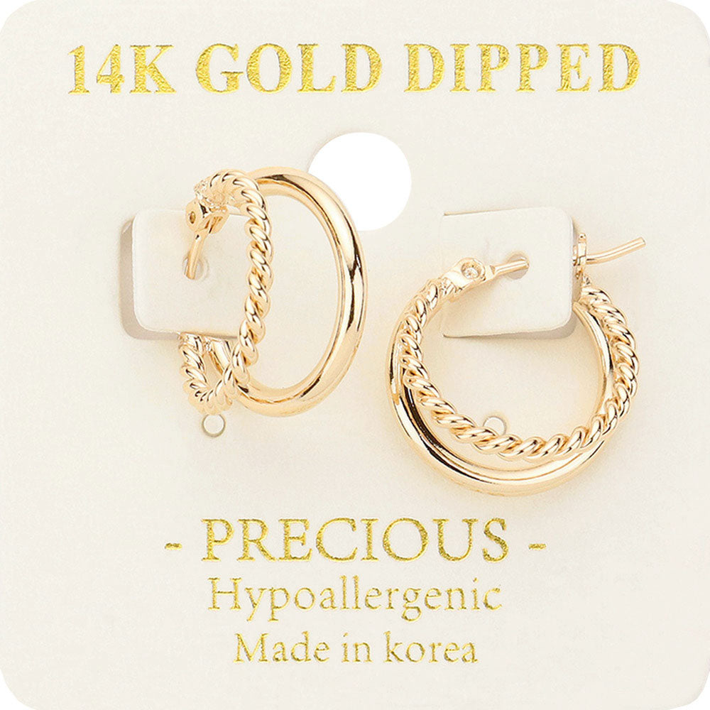 These beautiful earrings feature a sleek double-loop design dipped in 14K gold for a smooth, refined shine. The layered loops create a modern, stylish look while still keeping the design lightweight and comfortable for all-day wear. A versatile pair that adds a polished touch to casual or dressy outfits.