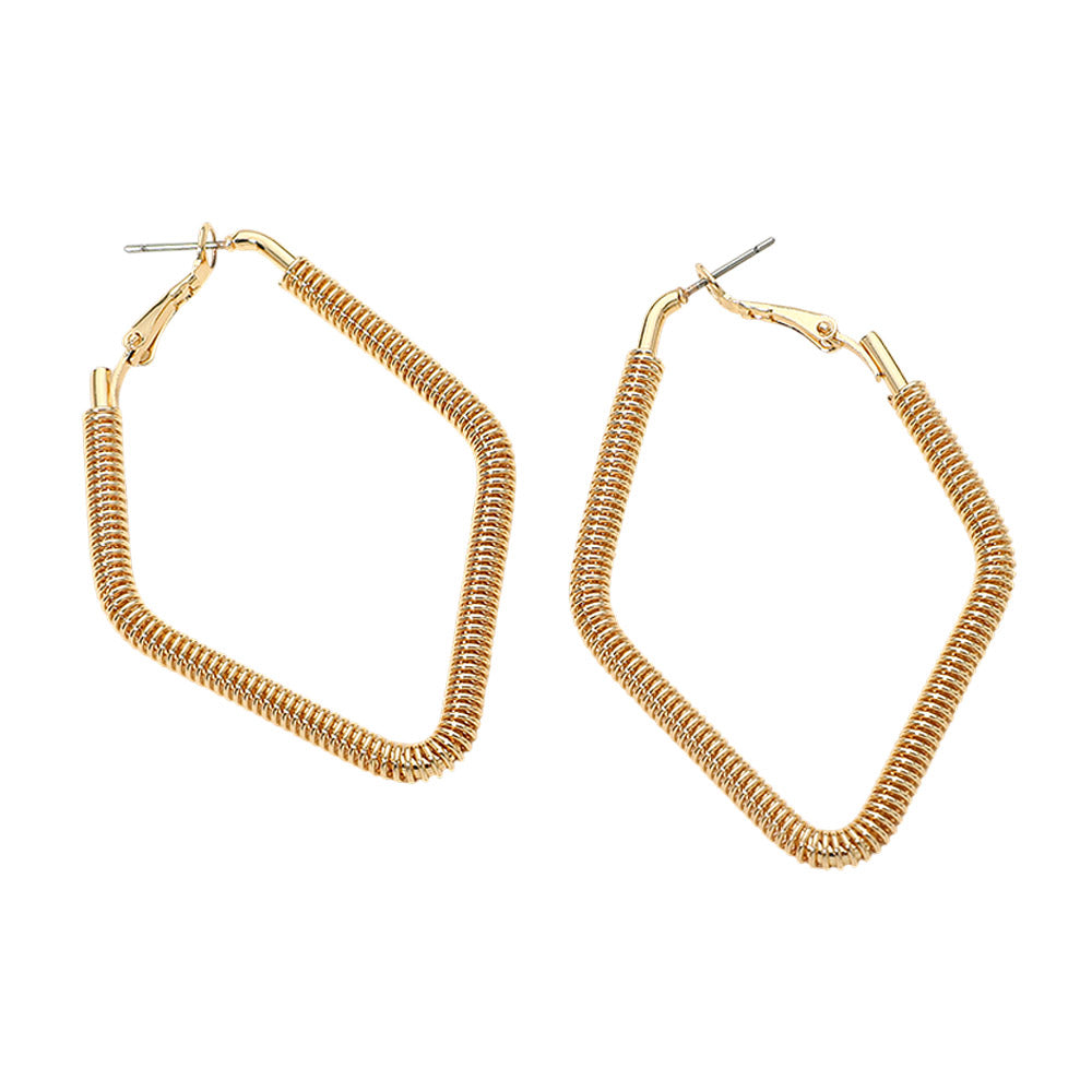 Add a modern touch to your jewelry collection with these gold dipped coiled metal geometric hoop earrings. Featuring a unique coiled metal texture and sleek geometric shape, these hoops bring stylish dimension and contemporary flair to any look. Perfect for everyday wear or adding a bold accent to your outfit. Also available in white gold dipped.