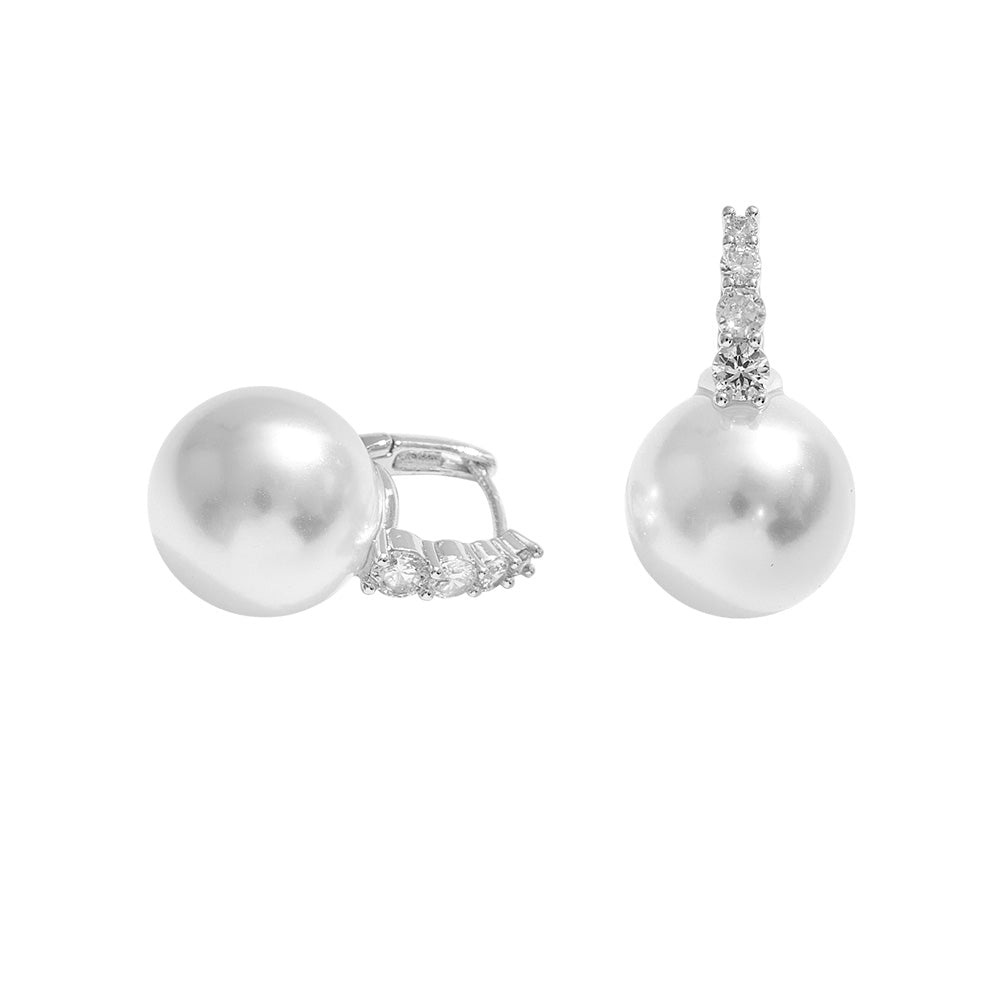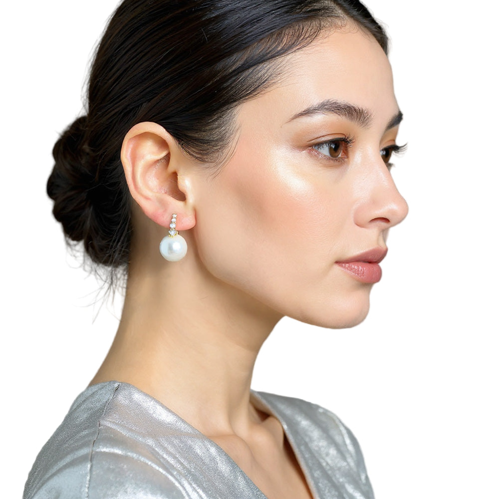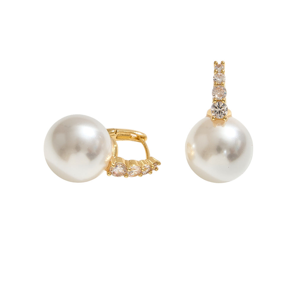 These elegant huggie hoop earrings feature sparkling cubic zirconia stones and delicate pearl tips, dipped in gold (also available in white gold). A chic and versatile accessory for any occasion.