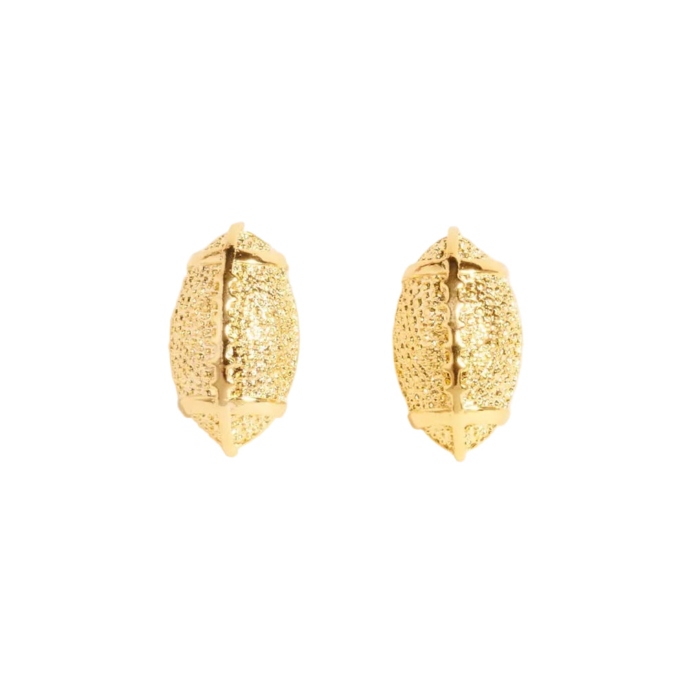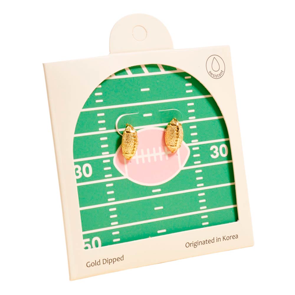 Sporty gold dipped football stud earrings with detailed football design and lightweight feel. Perfect for game days, tailgates, or showing off your team spirit with everyday outfits.