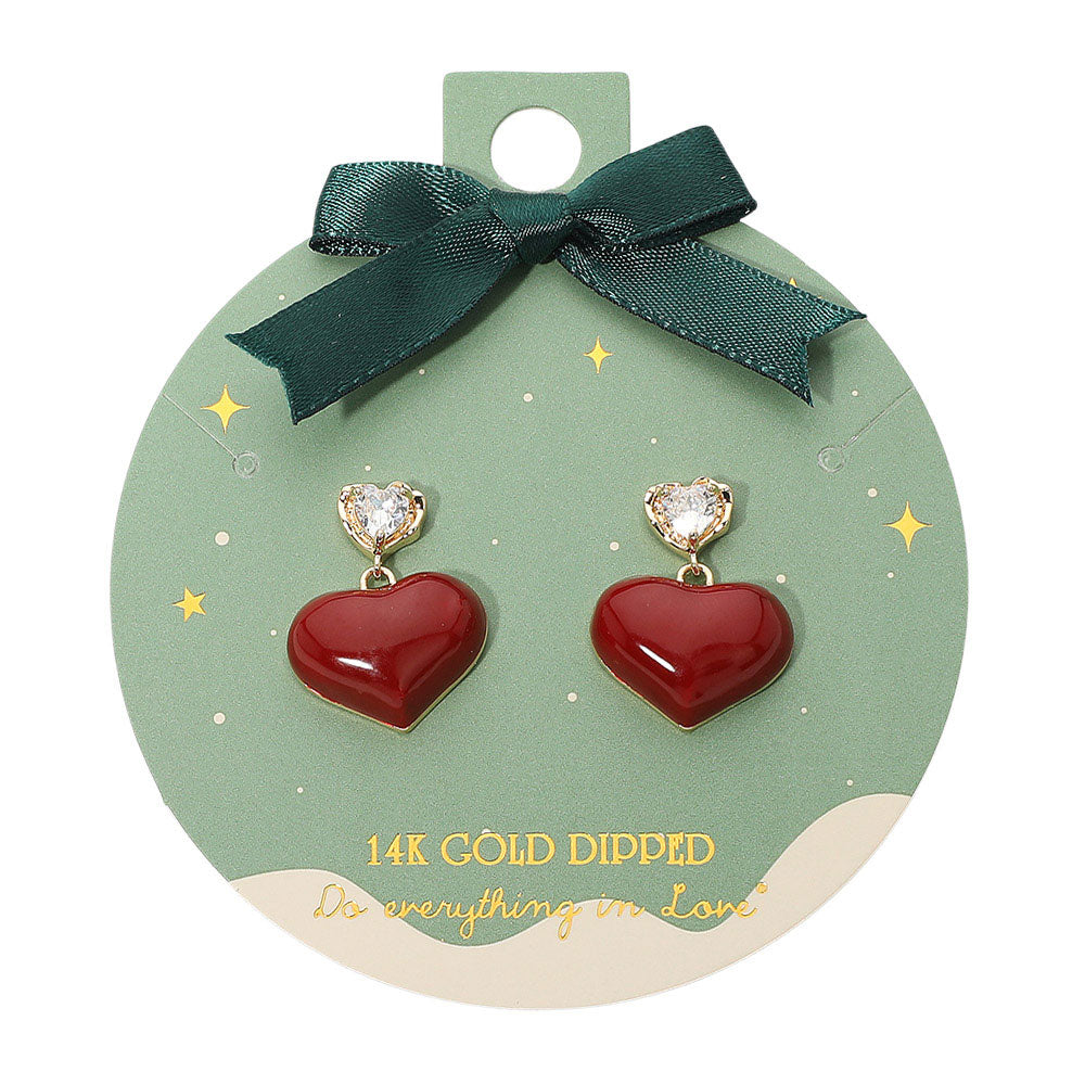 These adorable charm drops feature a dainty heart design with a subtle stone accent for a touch of sparkle. The 14K gold dipped finish gives them a warm, polished look, making them a cute pick for gifting or adding something sweet to your jewelry box.