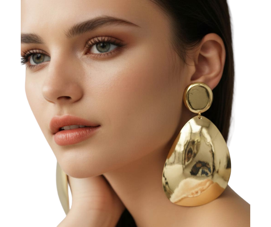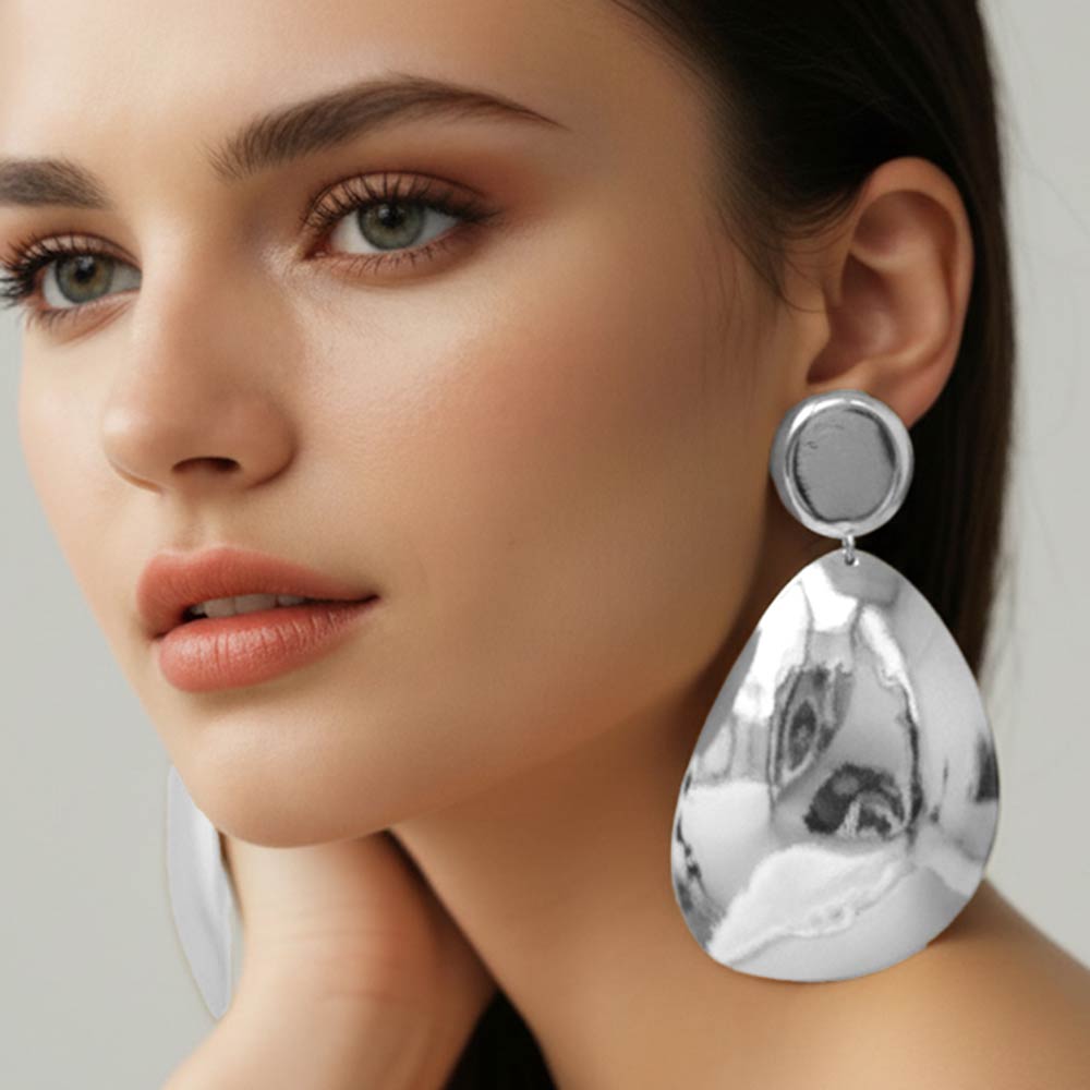 Make a bold impression with these Oversized Teardrop Plate Statement Clip On Earrings. Featuring a sleek, sculptural teardrop design with a high-shine finish, they deliver dramatic style without the need for pierced ears.