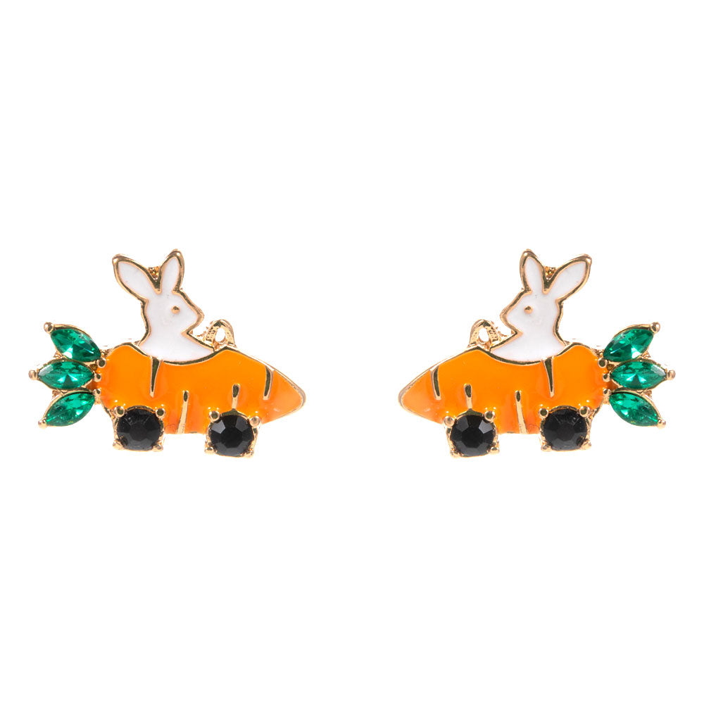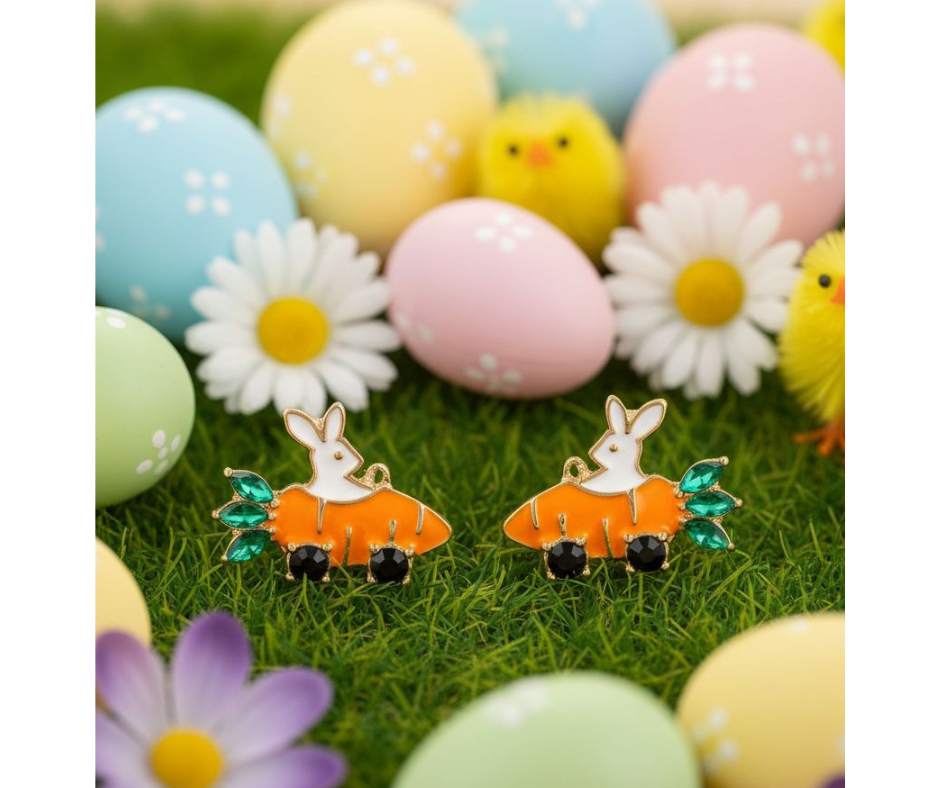 Adorable stud earrings featuring a bunny and carrot design for a fun, festive Easter look. Lightweight and easy to wear, they’re perfect for celebrating the season or adding a playful touch to your spring outfits.