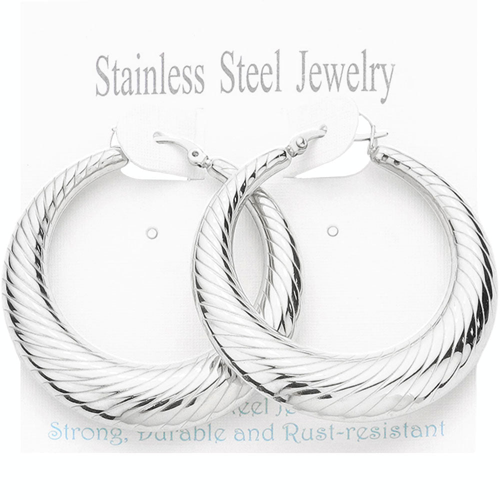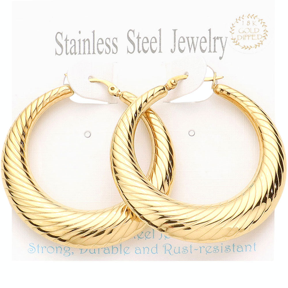 Stainless Steel Textured Hoop Pin Catch Earrings in gold or silver. These hoops feature a detailed textured design with a secure pin catch closure. Crafted from stainless steel, they’re lightweight, durable, and perfect for adding a polished touch to any look.
