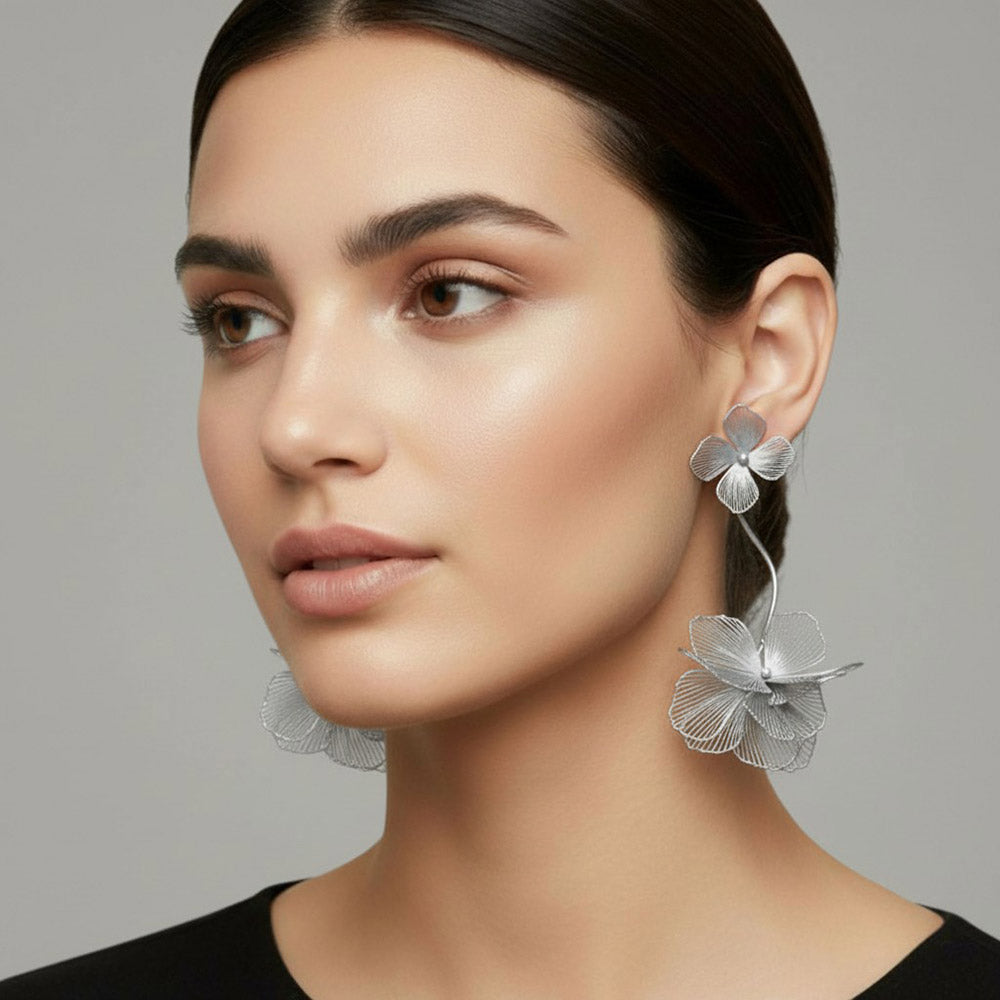 Make a bold floral statement with these sculpted cutout bloom drop statement earrings. Featuring a modern flower-inspired silhouette with detailed cutout shaping, this design blends artistic style with eye-catching movement. Lightweight and striking, these earrings are perfect for dressing up simple outfits or adding standout charm to your accessory collection.