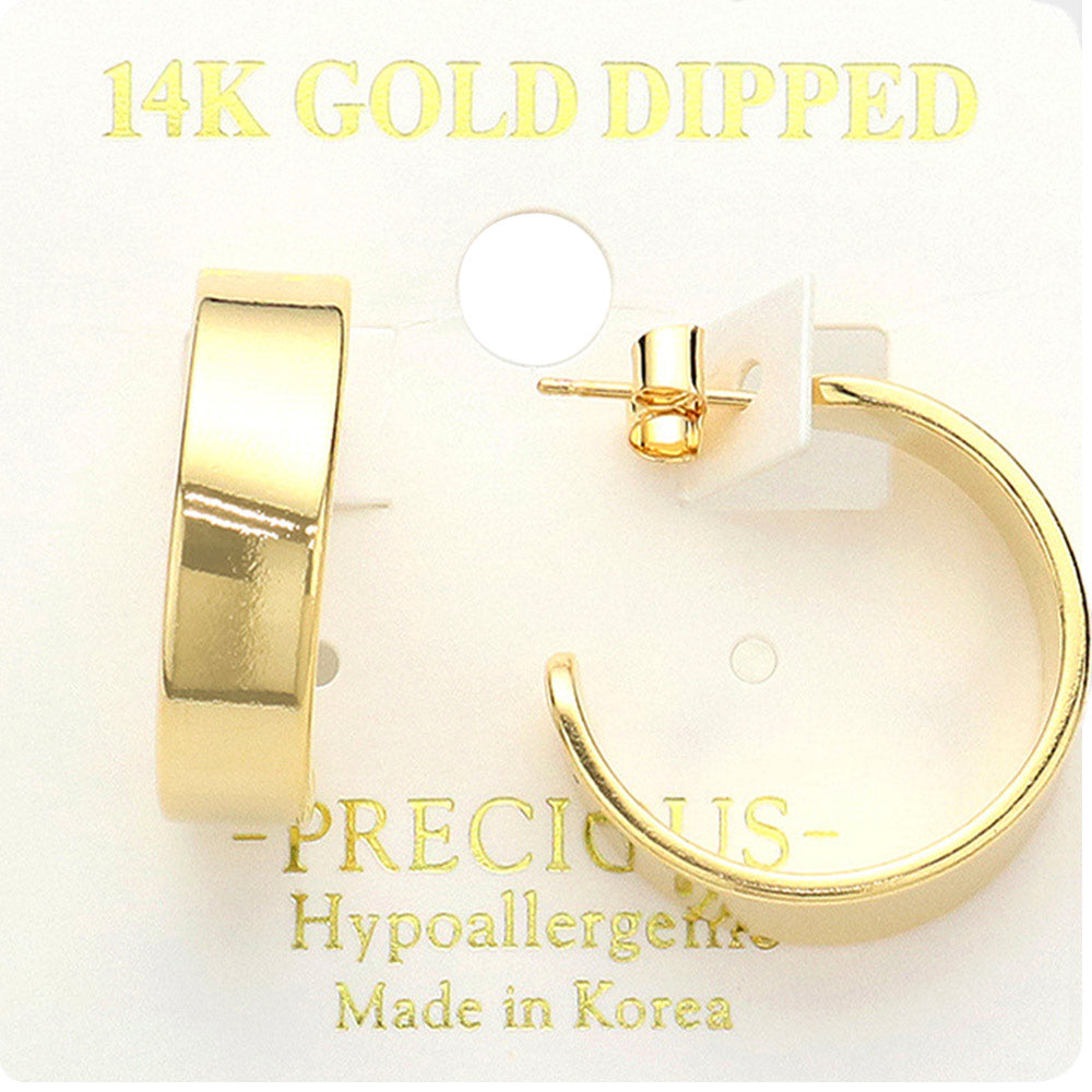 14k gold dipped hypoallergenic metal hoop earrings, also available in white gold dipped. Gentle on sensitive ears and comfortable for everyday wear. A versatile and stylish addition to any jewelry collection.