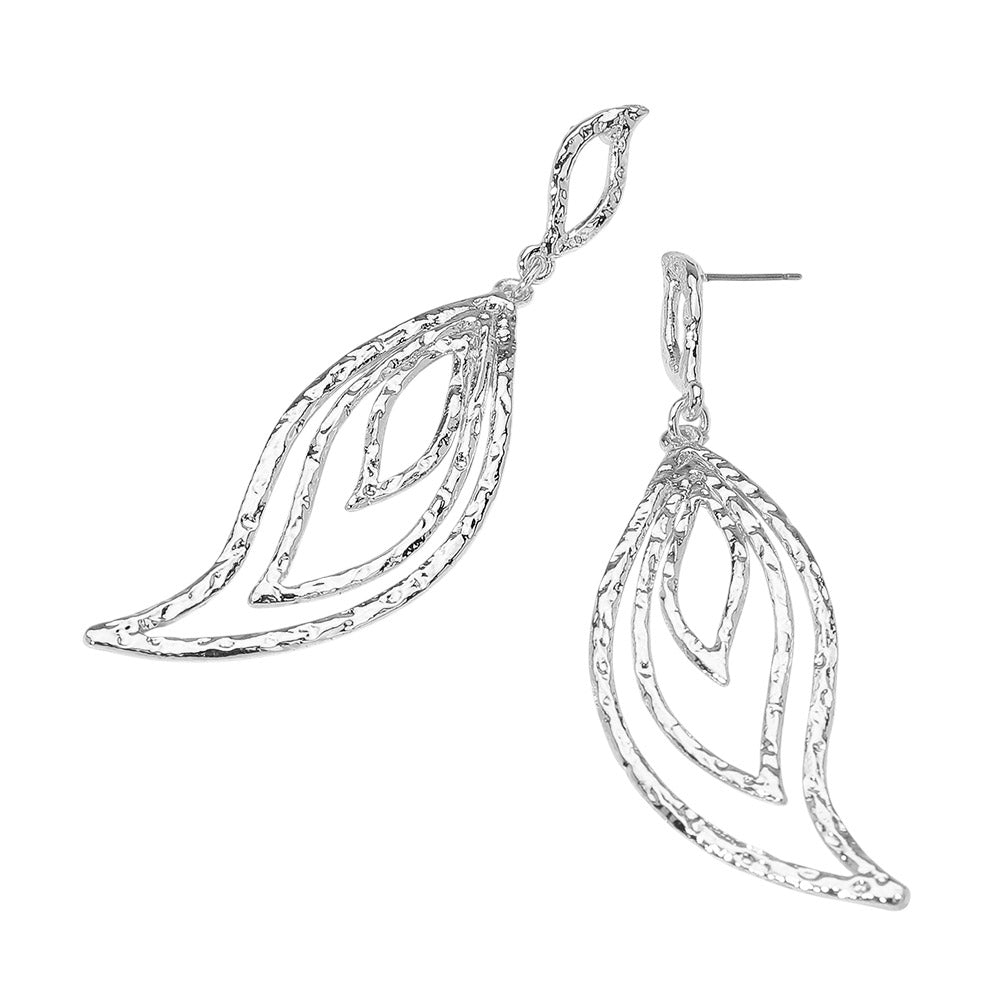 The bold textured metal wire layered leaf drop dangle earrings feature a delicate leaf-inspired design with a modern layered look. Available in gold or silver, they bring a touch of nature-inspired charm to any outfit.
