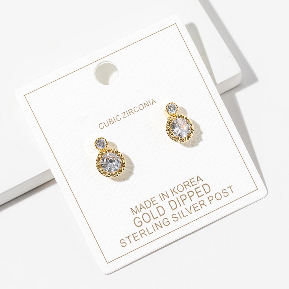 Classic sparkle with a bold twist, these gold dipped double halo cubic zirconia stud earrings are designed to shine. Featuring a center stone surrounded by two shimmering halos, they create beautiful dimension and eye-catching brilliance. Perfect for everyday wear or special occasions, these studs add refined shine to any look.