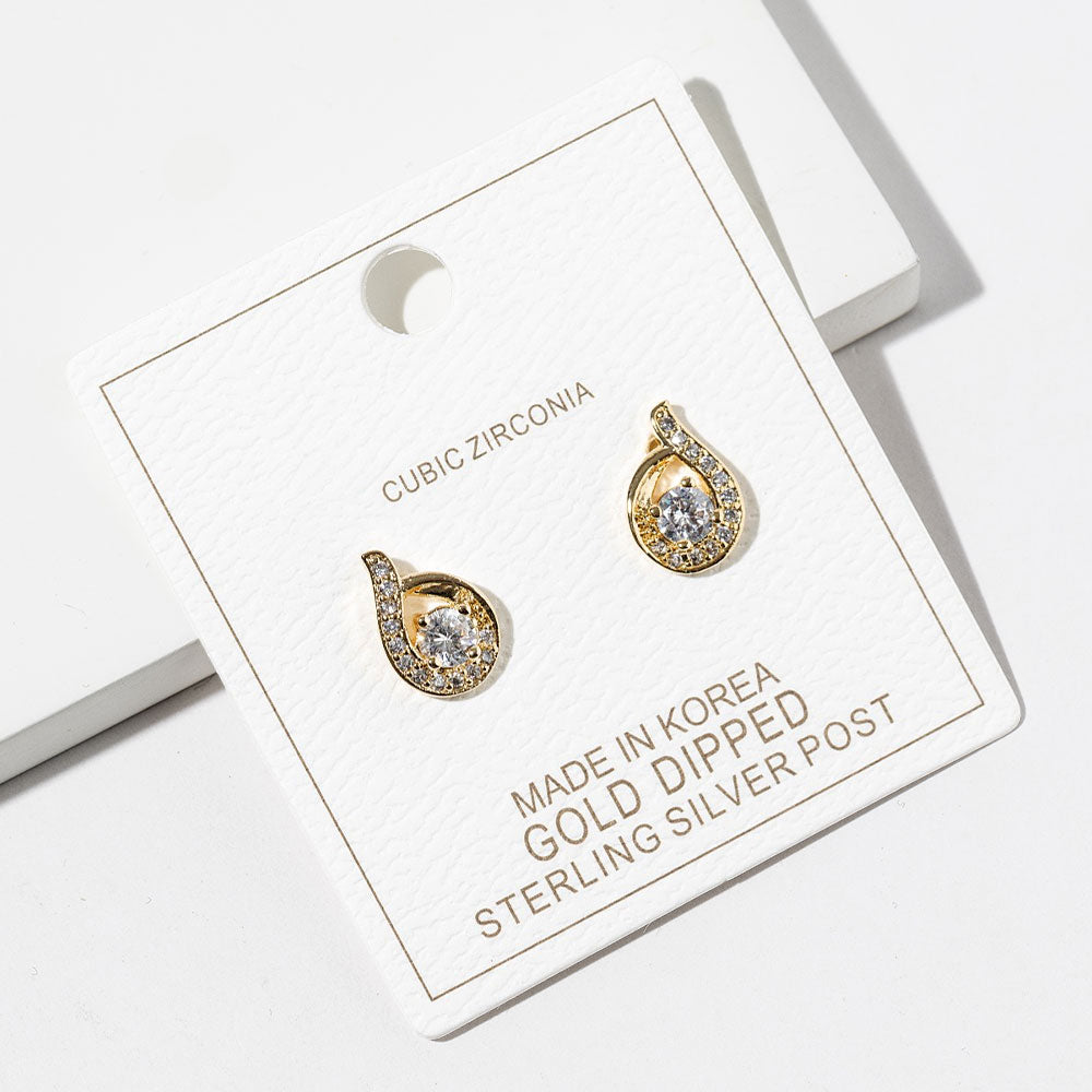 Elegant with a touch of sparkle, these gold dipped cubic zirconia halo teardrop stud earrings feature a radiant center stone framed by a shimmering halo. The teardrop silhouette adds soft detail while keeping the look classic and refined. Perfect for everyday wear or special occasions, these studs bring polished shine to any outfit.