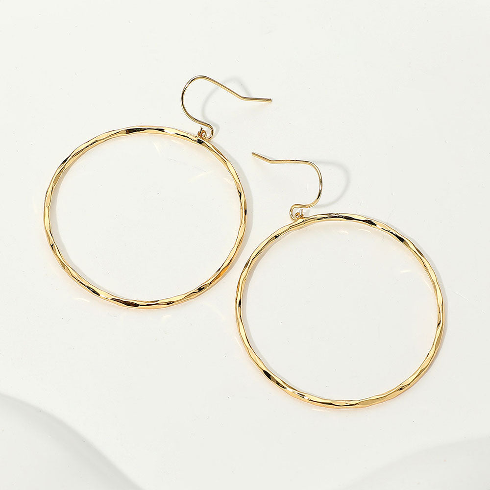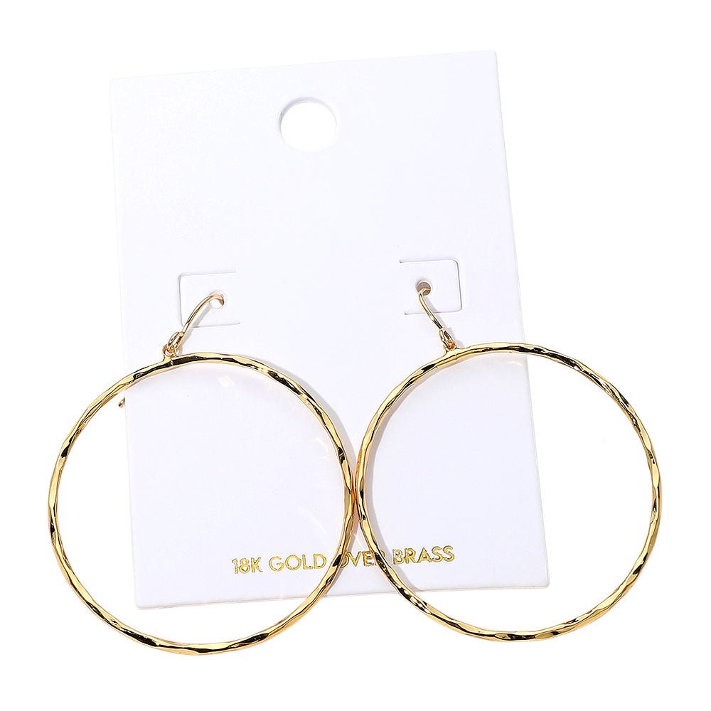 Add a touch of luxury to your style with these 18K gold textured hoop dangle earrings. Their classic design with subtle texture makes them a versatile accessory for any occasion.
