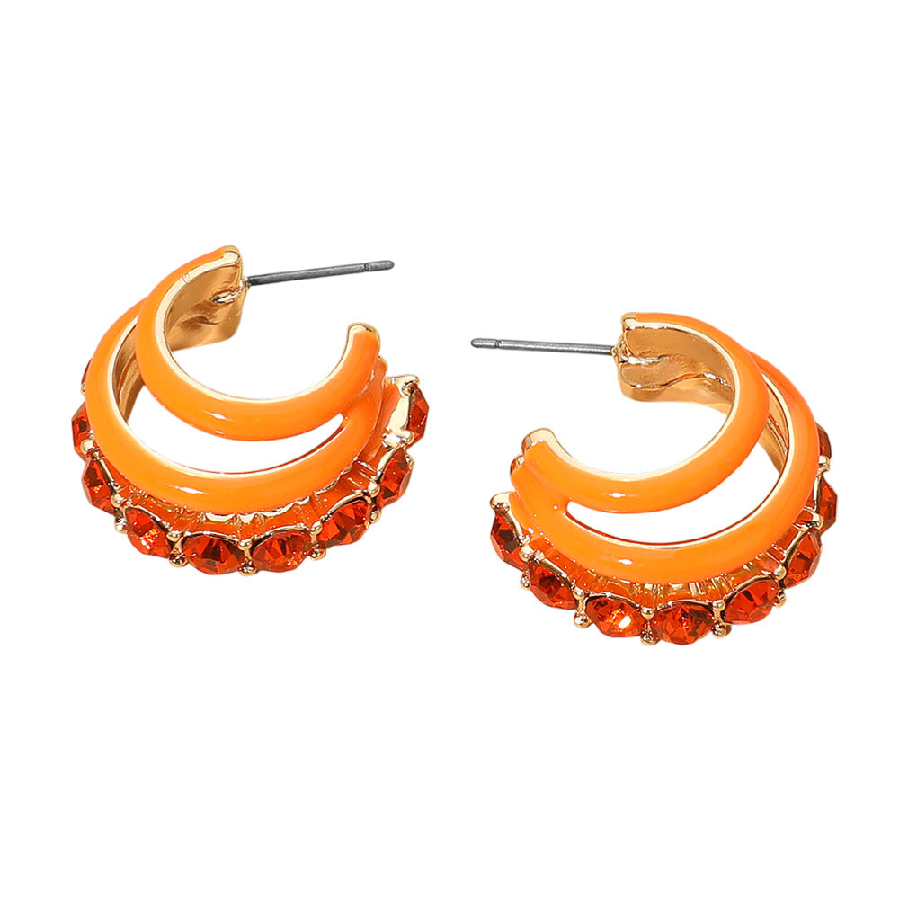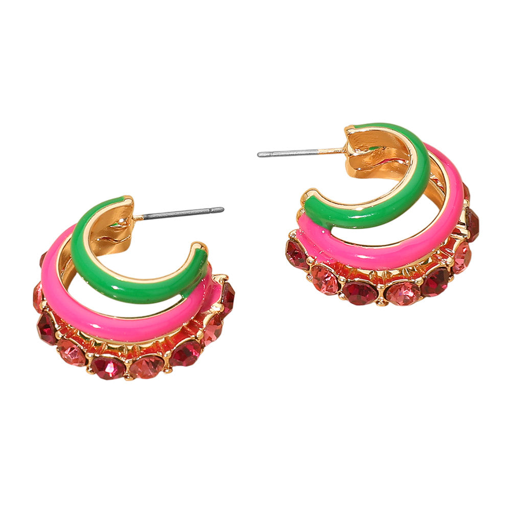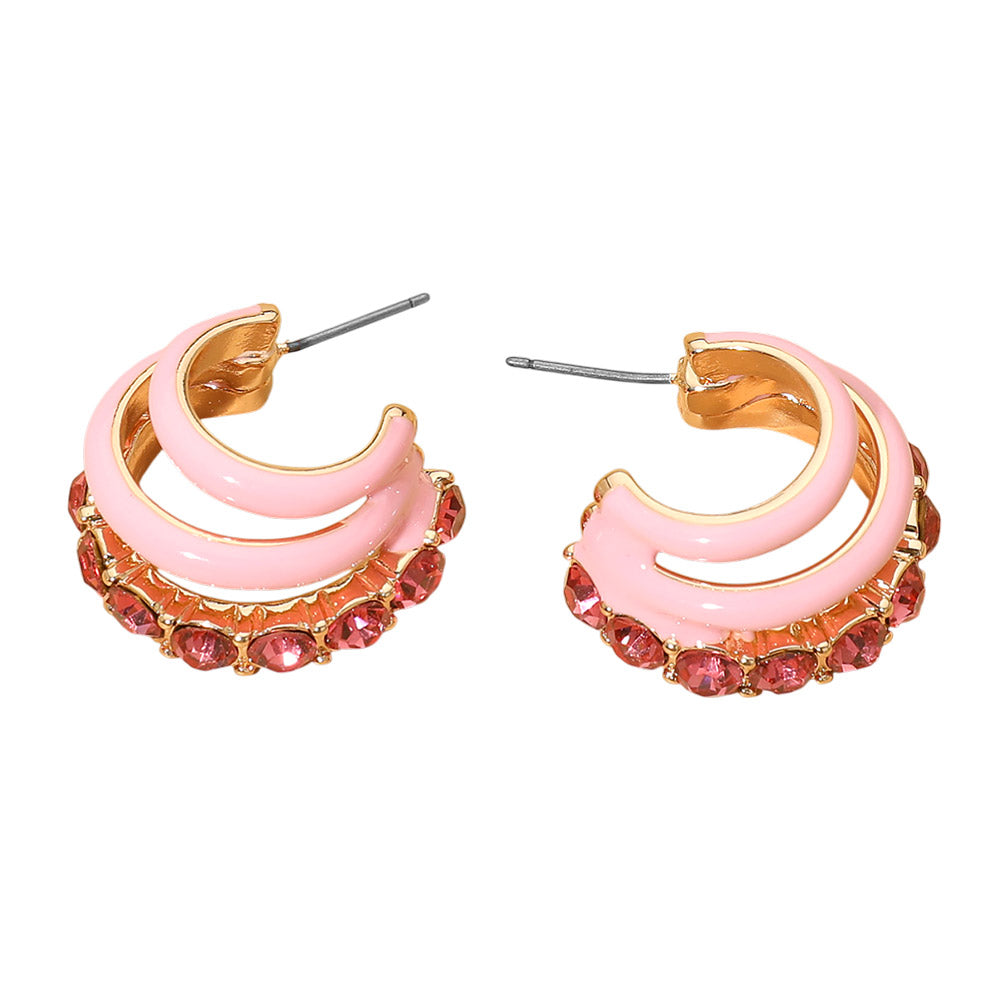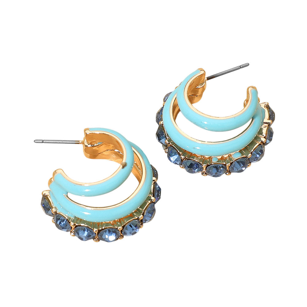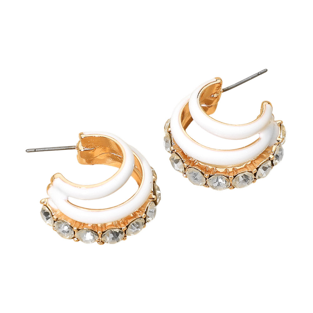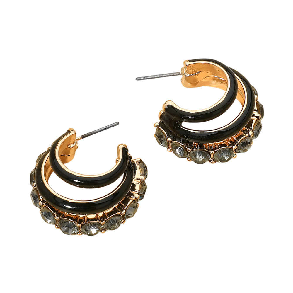 Add a little sparkle with a modern twist. These layered hoop earrings feature smooth enamel detailing paired with subtle rhinestone accents for just the right amount of shine. The layered design gives them dimension, while the lightweight feel makes them easy to wear all day.