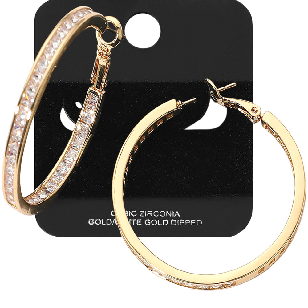 Gold Dipped Cubic Zirconia Stone Channel Hoop Earrings with a polished finish and sparkling stones set neatly in a channel design. Elegant yet versatile, they’re perfect for daily wear or special occasions. Also available in white gold dipped.