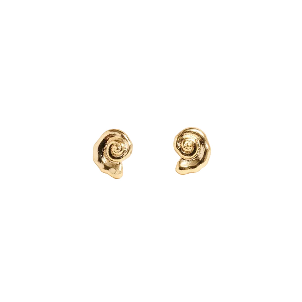 Gold dipped spiral shell mini stud earrings. Inspired by the ocean, these earrings add a subtle beachy touch to any outfit. Small and versatile, perfect for everyday wear or layering with other studs.