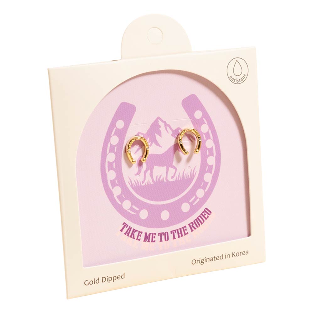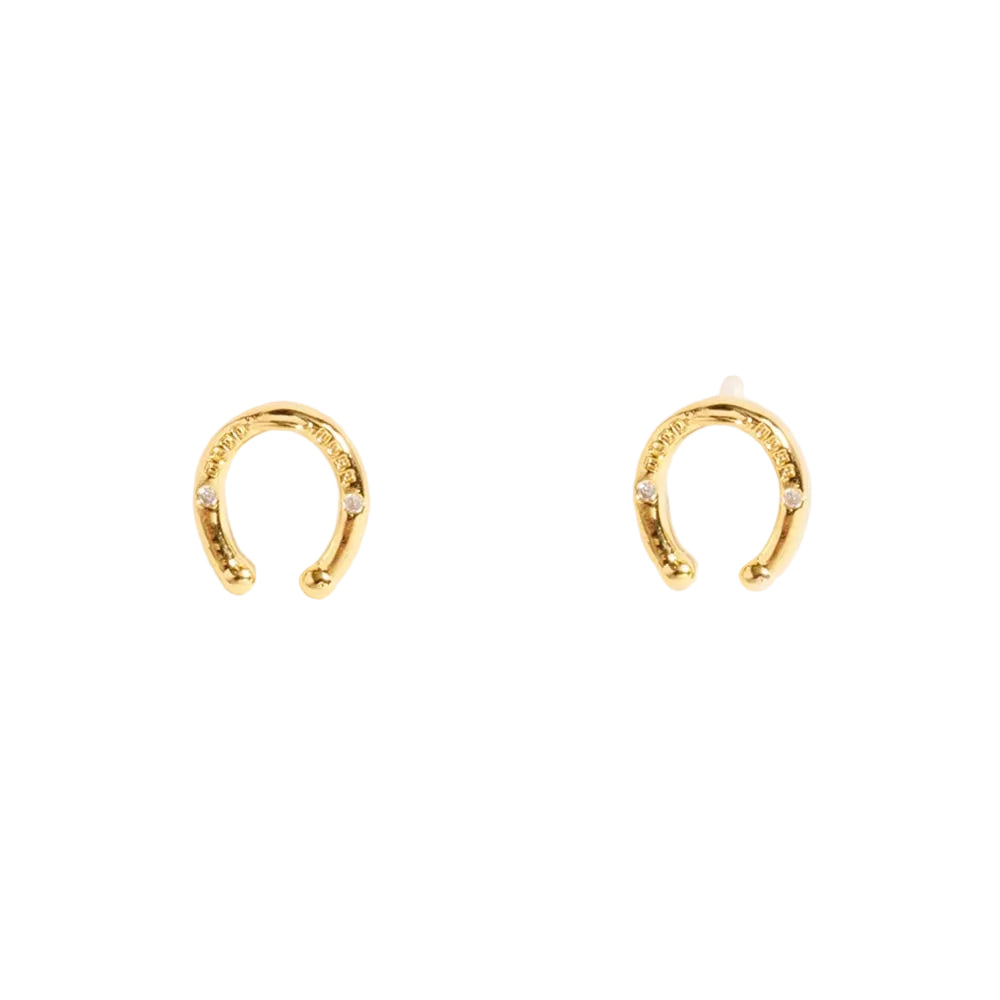 Gold dipped horseshoe stud earrings. A simple, lucky charm design that adds subtle sparkle to any outfit. Perfect for everyday wear or layering with other studs.