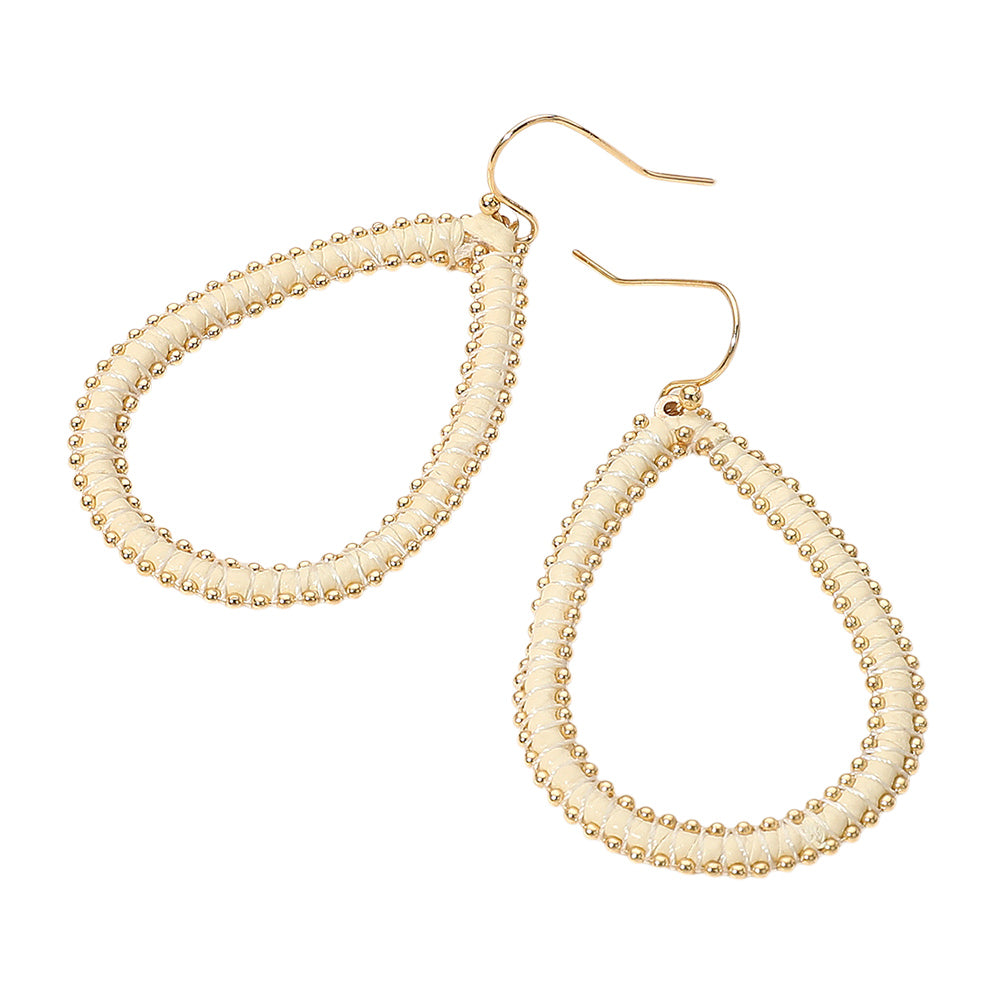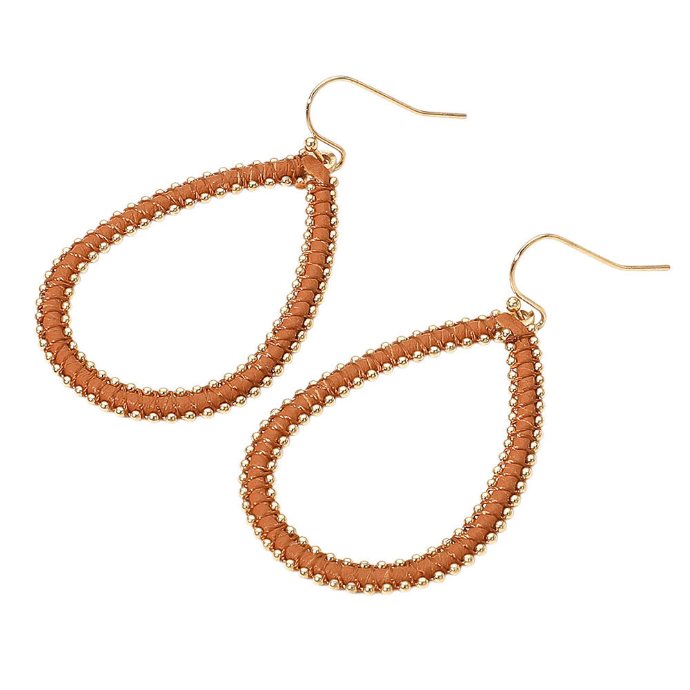 Add texture and style with these open teardrop dangle earrings featuring a faux leather wrap and beaded edge detailing. Lightweight and versatile, they bring a unique finish to any look.