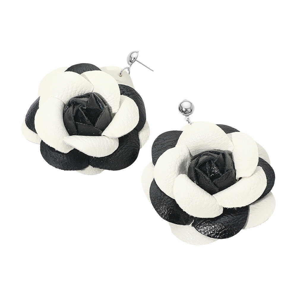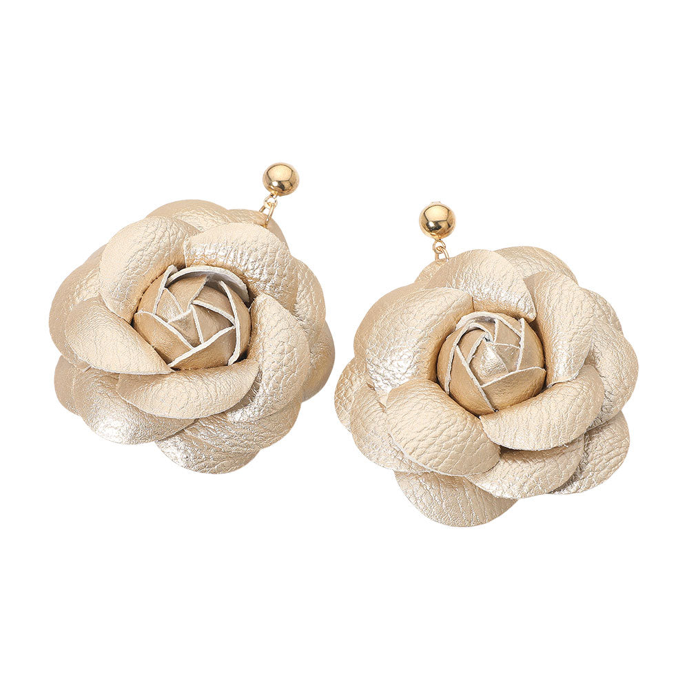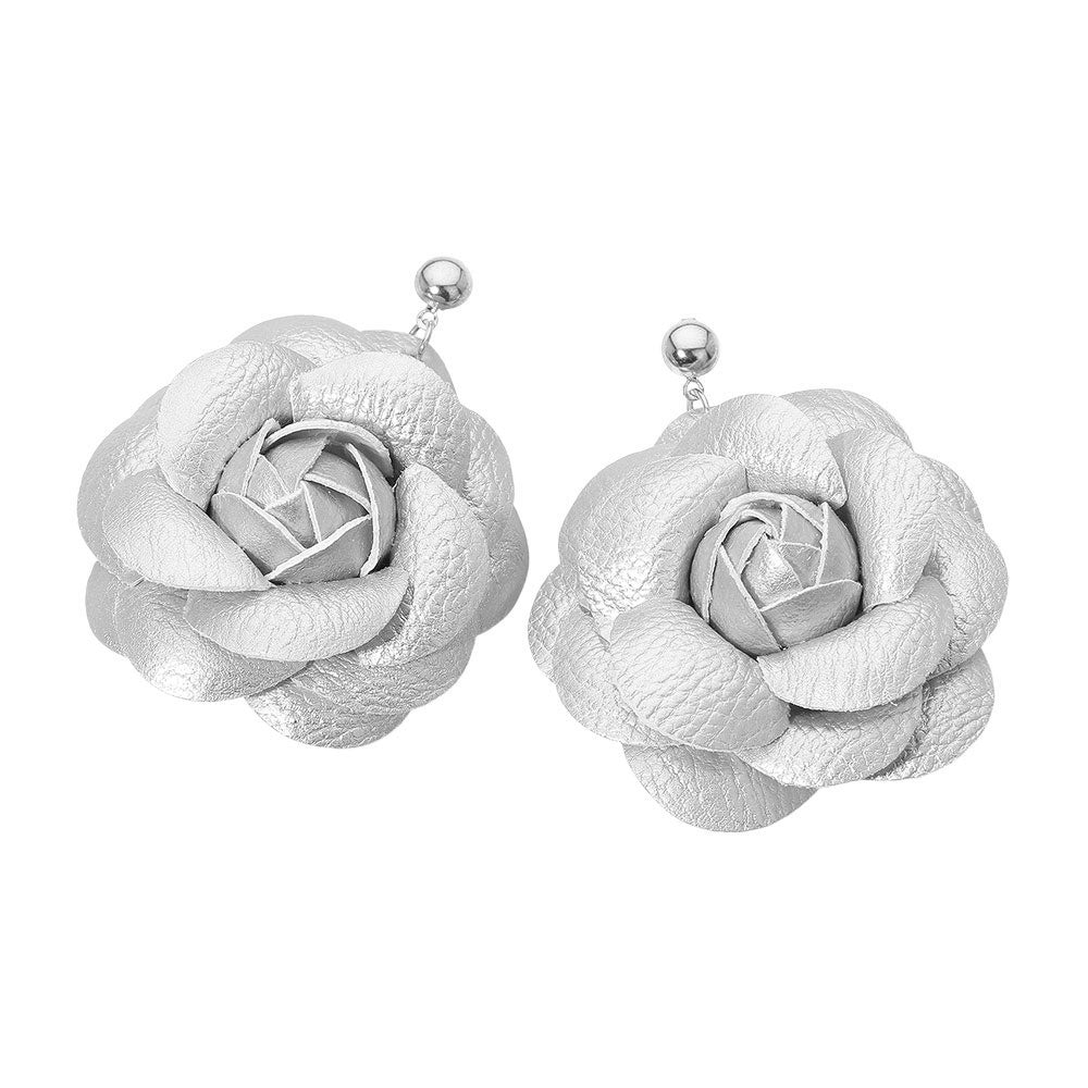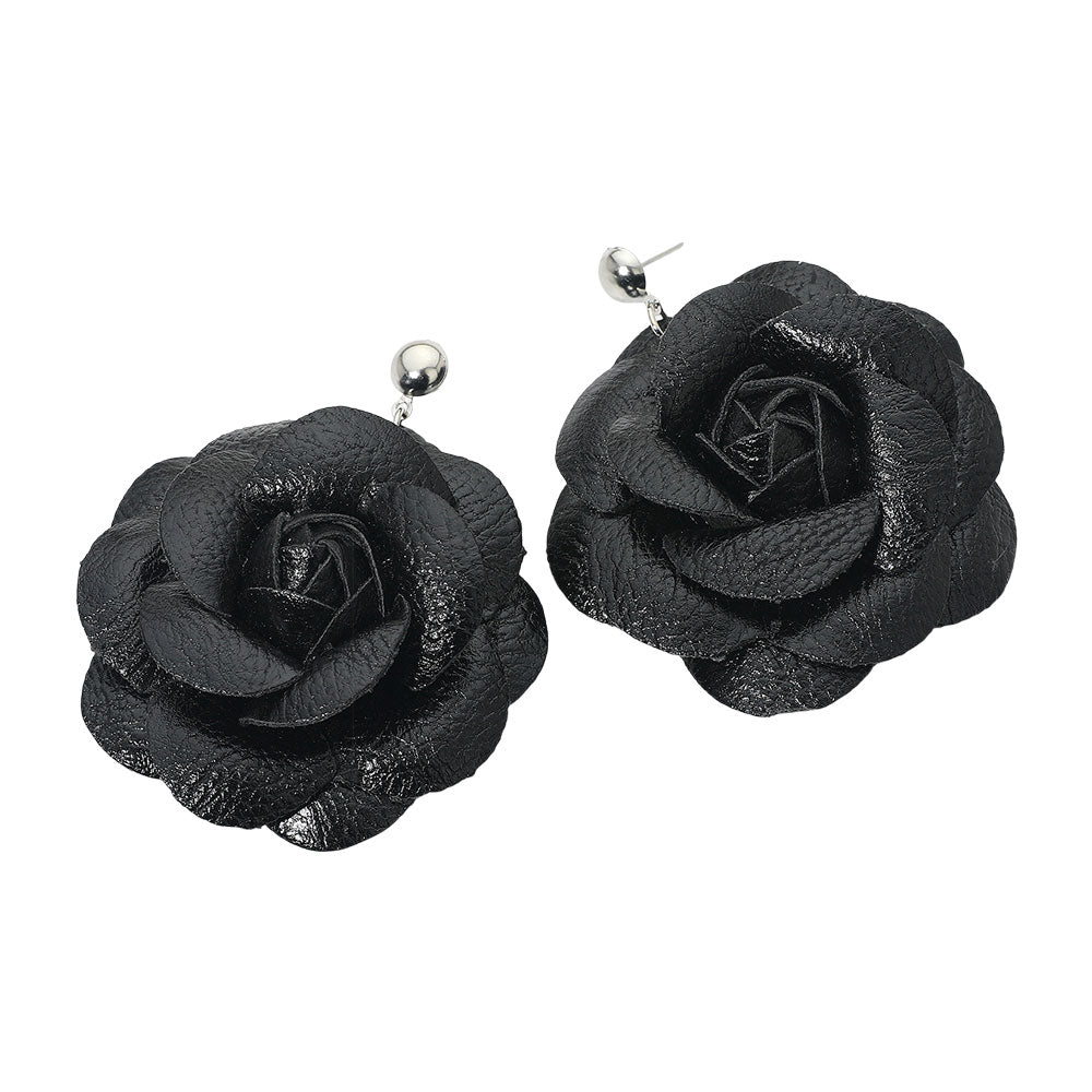 These charming earrings feature faux leather rose blooms crafted into a soft, dimensional shape that adds a touch of floral flair to any look. Lightweight and comfortable, they offer a pretty, standout style that’s easy to wear for both casual and dressy days.