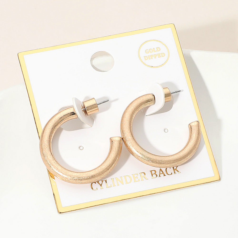 These gold dipped open hoop earrings feature a sleek, minimal design for a clean, modern look. The polished finish adds a subtle shine that’s easy to style. Also available in white gold dipped for added versatility.