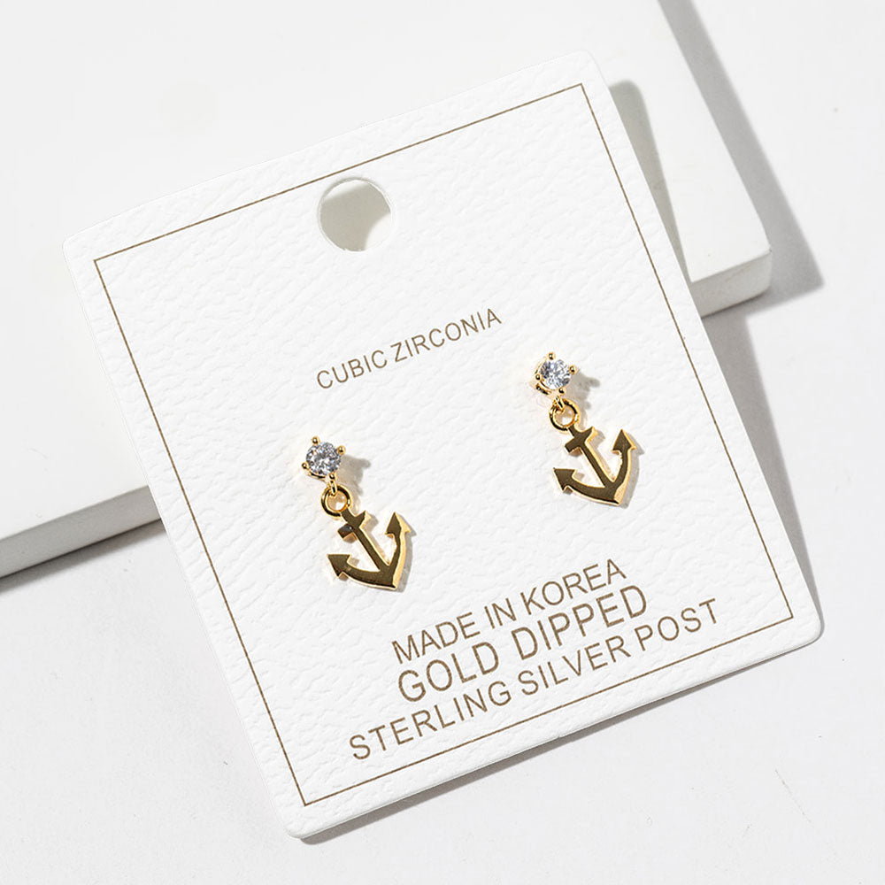 Add a nautical touch with a hint of sparkle in these gold dipped cubic zirconia accent anchor charm drop dangle earrings. Featuring detailed anchor charms accented with shimmering stones, they bring coastal inspiration and polished shine together in one eye-catching design. Lightweight and full of personality, these earrings are perfect for beach lovers or adding a fun statement to your everyday style.