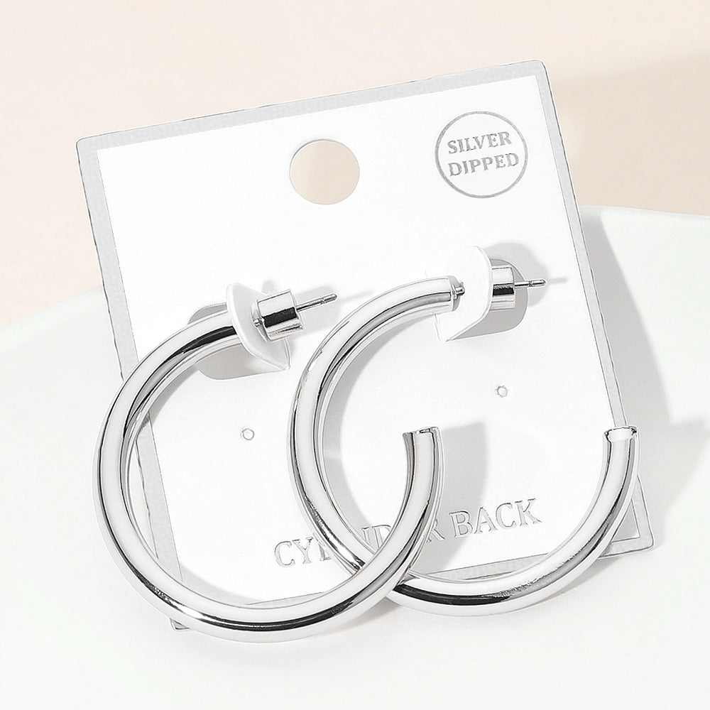 These gold dipped bold open hoop earrings feature a sleek, open design for a modern, eye-catching look. The smooth, polished finish adds a clean shine while keeping the style lightweight. Perfect for everyday wear or adding a confident statement.