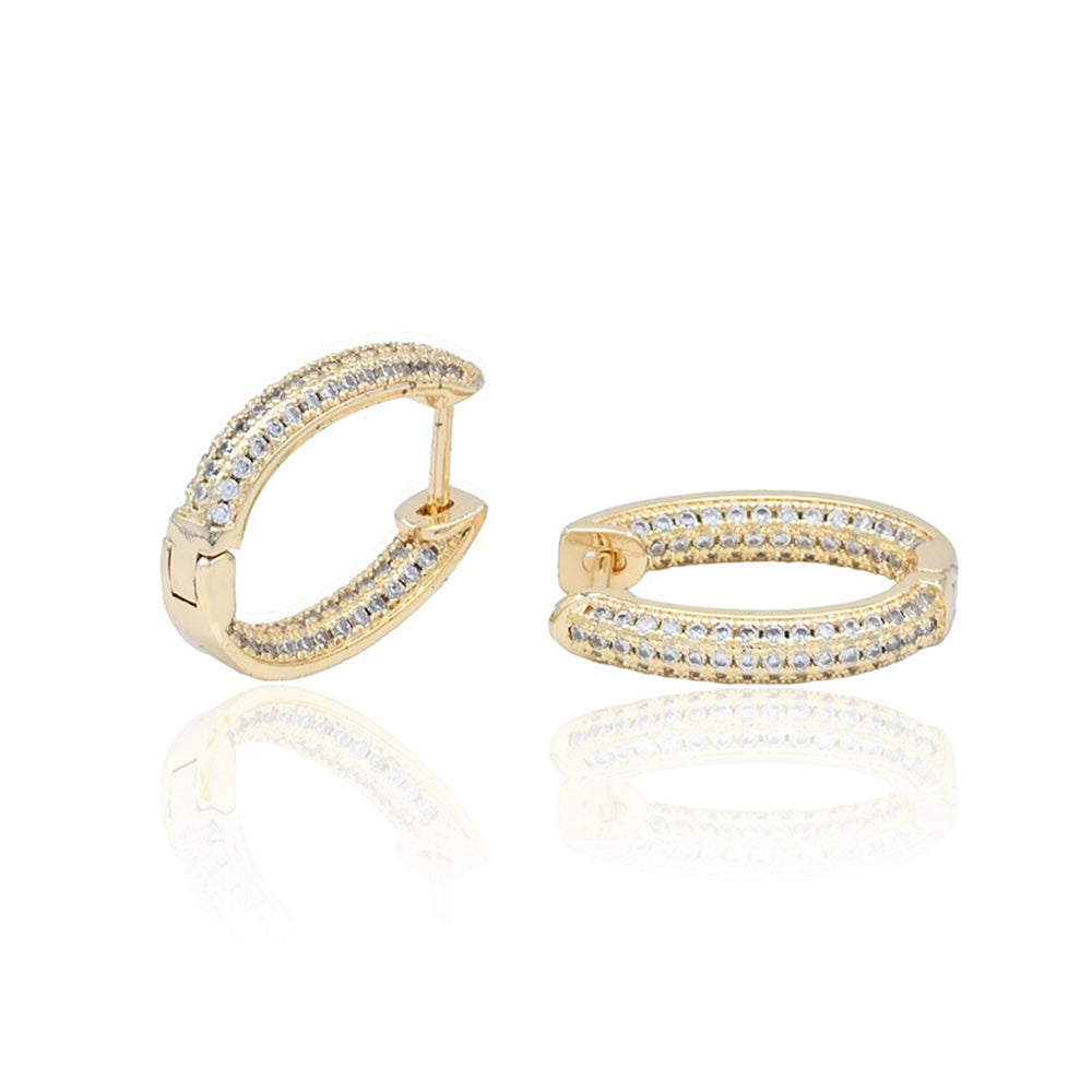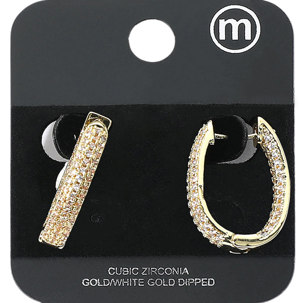 Gold Dipped Cubic Zirconia Stone Paved Oval Huggie Hoop Earrings featuring a sleek and sparkling design, also available in white gold dipped. These earrings offer a perfect balance of shine and sophistication. Ideal for both everyday wear and special occasions.